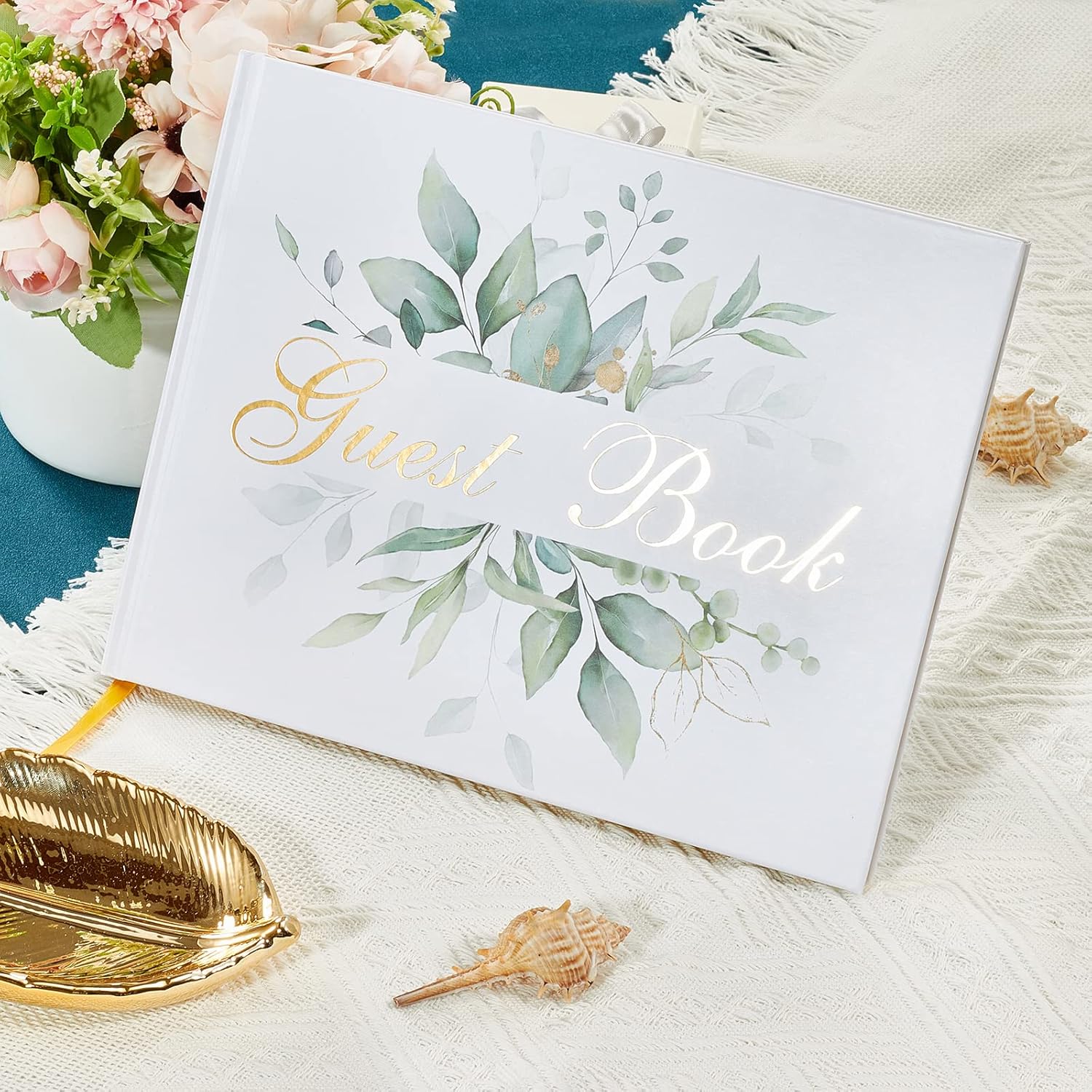 TRULIVA Wedding Guest Book - Guest Sign in Book - Wedding Reception Registry Book - Hard Cover, 7" x 9" (Eucalyptus Gold Foil, Book)