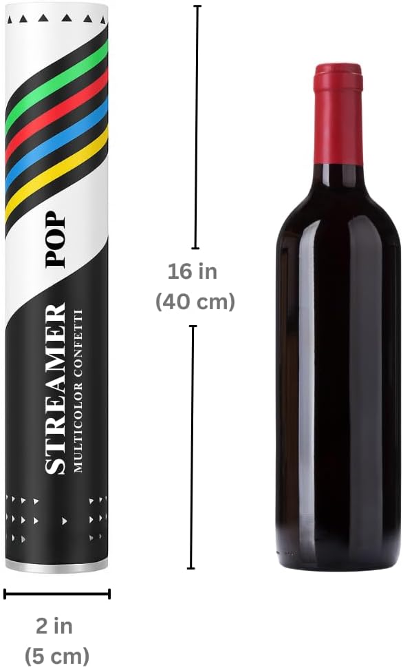 - π SUPER LOUD & FUN for any party or occasion - 6 JUMBO-SIZED poppers shooting multicolor STREAMER confetti papers up to 40 feet, fall and twirl slowly down in colorful streams. Poppers will shoot with loud [POP] that will guarantee to get everyone's attention.