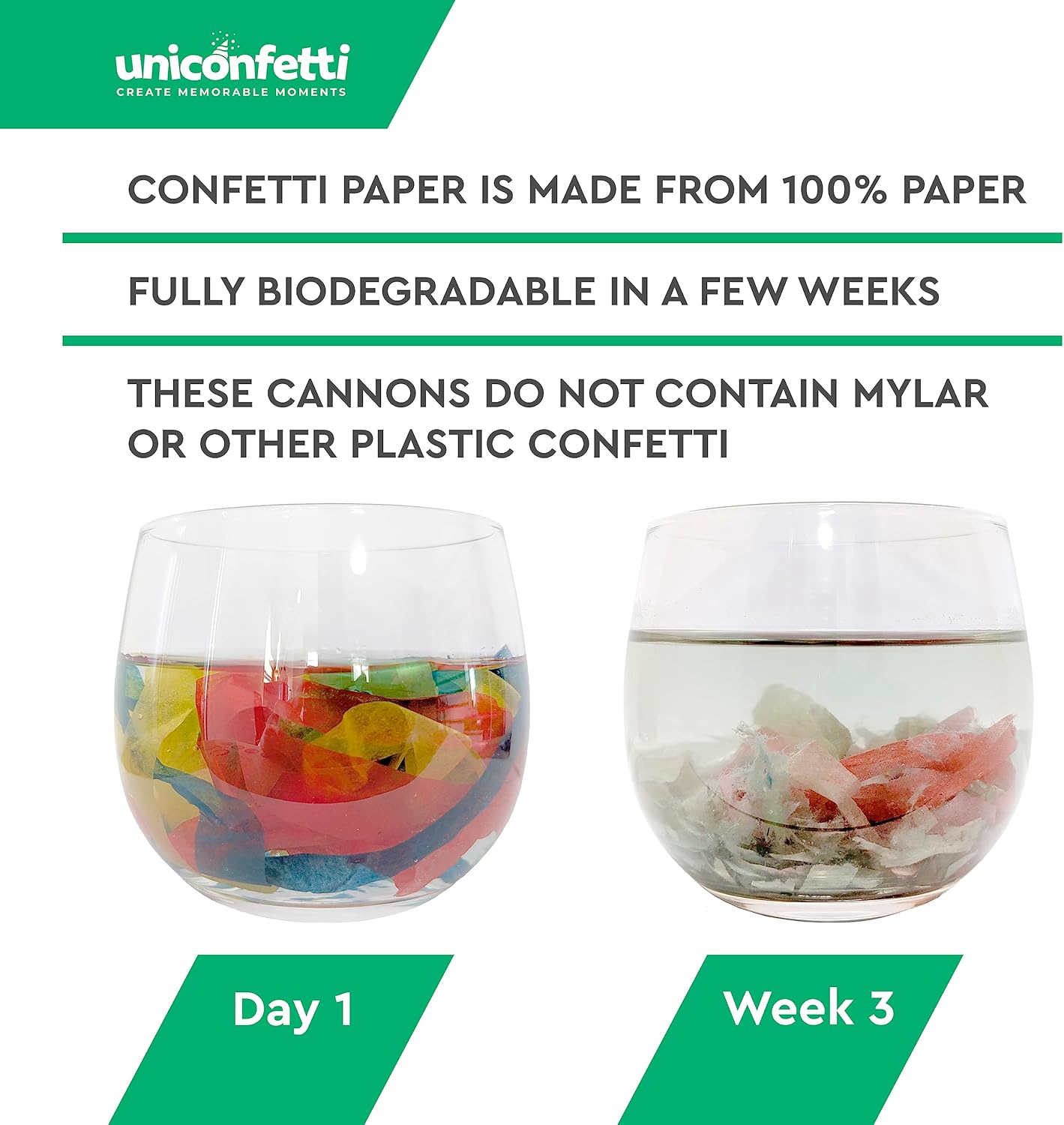 - π 100% BIODEGRADABLE & SAFE - Streamer Confetti is made of lightweight fire resistant papers, 100% biodegradable. Color dye is non-toxic and won't rub onto your clothing. 100% safe for your party and good for the environment.