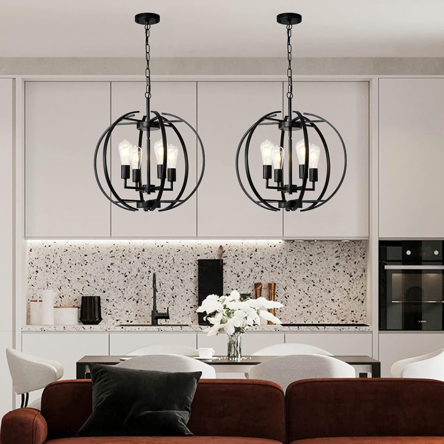 Large Lantern Globe Black Chandelier Lighting, Farmhouse Chandelier Adjustable Pendant Lighting Fixtures Hanging Ceiling 4 Light for Kitchen, Dining Room, Living Room, Hallway