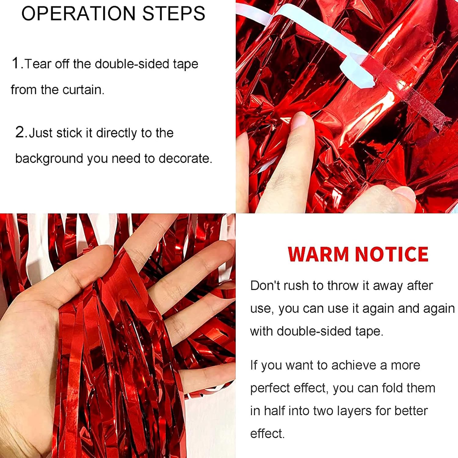 4 Pack Red Foil Fringe Curtain Backdrop, 3.28Ft x 9.84Ft Metallic Tinsel Foil Fringe Streamers Curtains for Party, Photo Booth Props, Birthday, 2022 Graduation Decoration Supplies