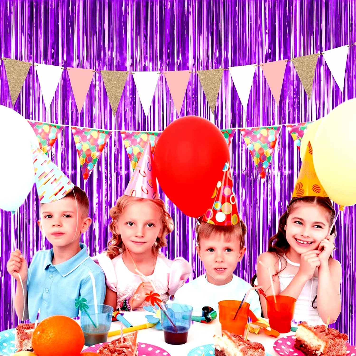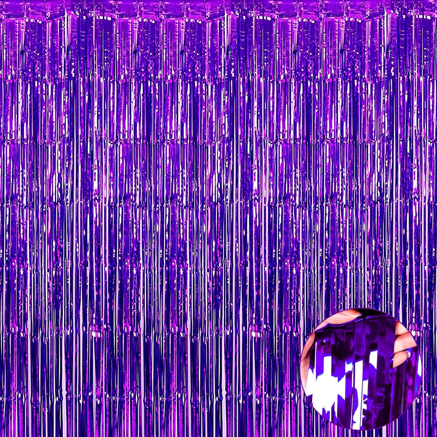 4 Pack Purple Foil Fringe Curtain Backdrop, 3.3Ft x 9.8Ft Metallic Tinsel Foil Fringe Streamers Curtains for Photo Booth, Wedding, Thanksgiving, Birthday, Christmas, Halloween Party Decoration