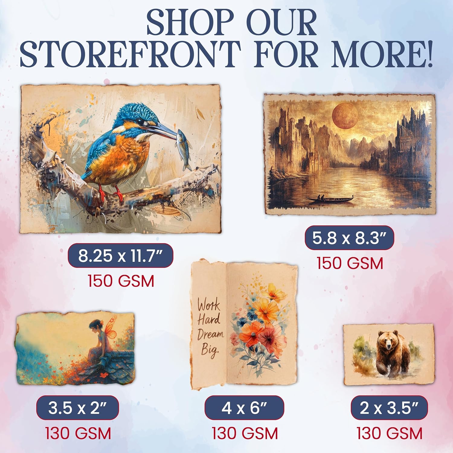 - [A Canvas for Every Creator]: Whether you’re working with lighter art mediums or tackling more substantial projects, we offer the perfect paper for your creative needs. This versatile externally sized vintage deckle paper provides the ideal balance of flexibility and strength for lighter projects. Available separately, our internally and externally sized watercolor paper delivers the durability needed for heavier media. Choose the right paper to bring your artistic vision to life