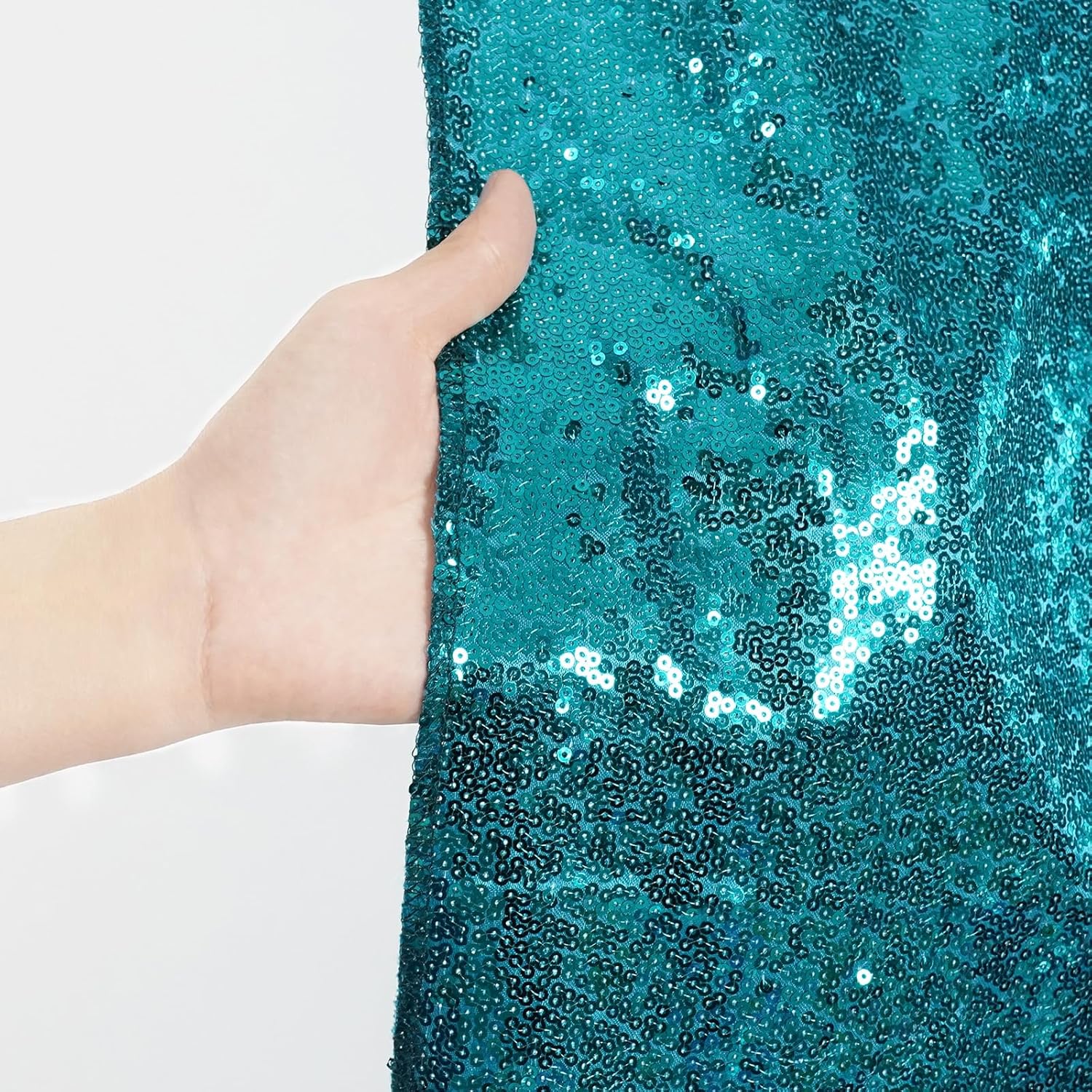 - 🌹【NOT SEE THROUGH SEQUIN BACKDROP】Package contains 1Pcs 6ft width by 8ft height teal satin sequin backdrop! The biggest highlight of this glitter backdrop is that its non-transparent property, the backing of this backdrop is cloth, not mesh, so lights will be blocked about 99%.