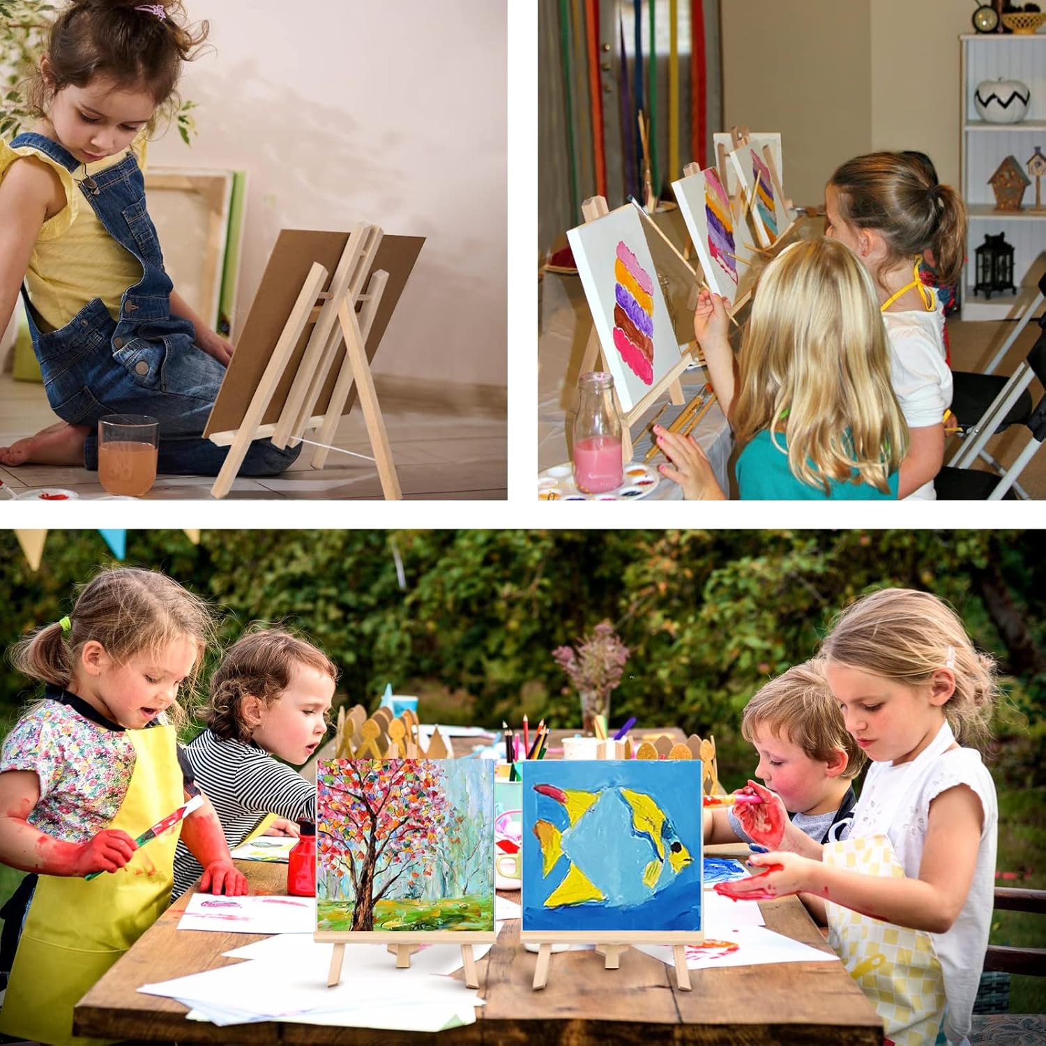 - Multipurpose uses: The table top easel is a great choice for multiple uses as small easels for painting, art decoration display easels, party tripod display, office presentations, store event signs display. A great match to your paint workshops, paint classes, paint birthday party, art and wine nights.
