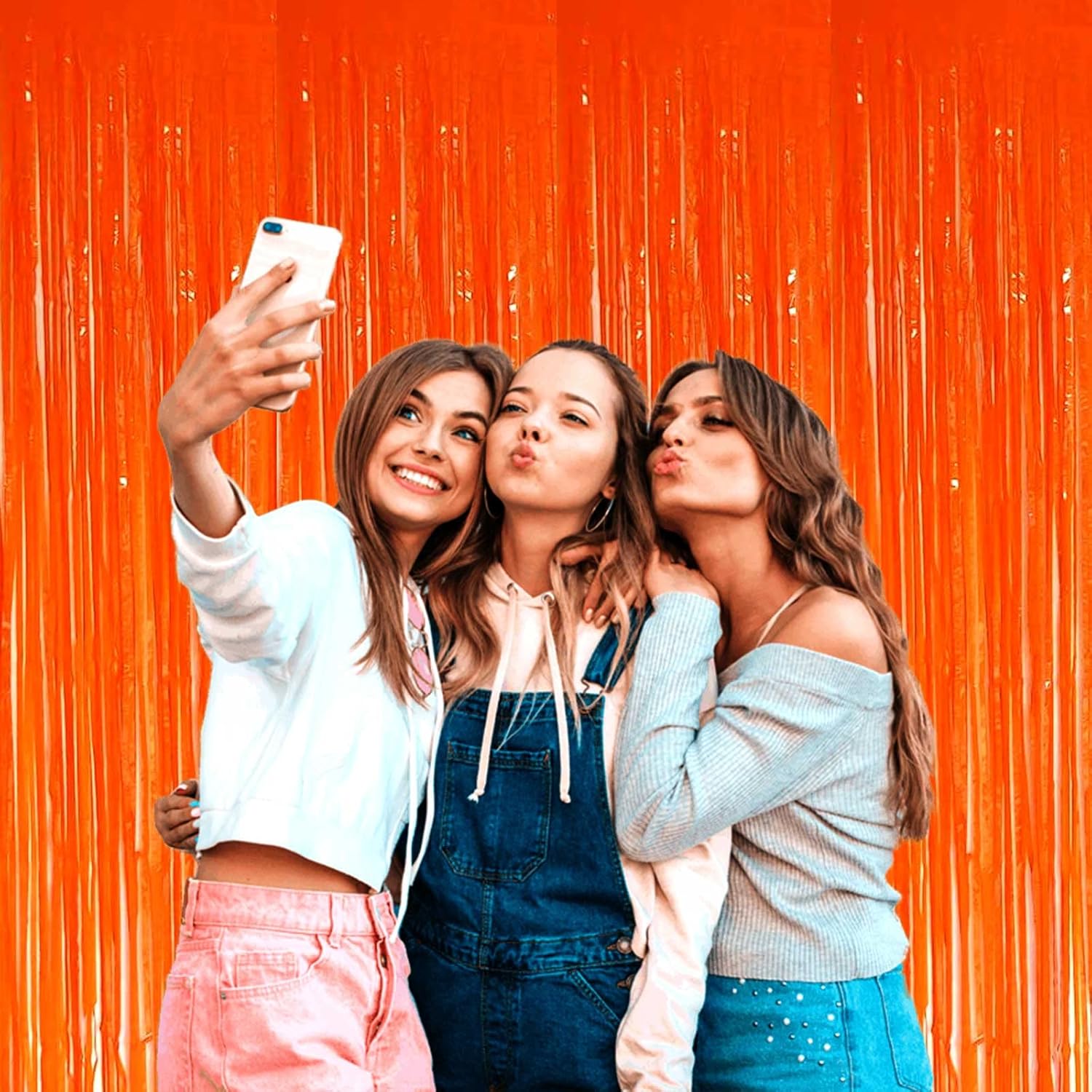 4 Pack Orange Foil Fringe Curtain Backdrop, 3.3Ft x 9.8Ft Metallic Tinsel Streamers Curtains Photo Booth, Wedding, Thanksgiving, Birthday, Christmas, Halloween Party Decor, Macaron
