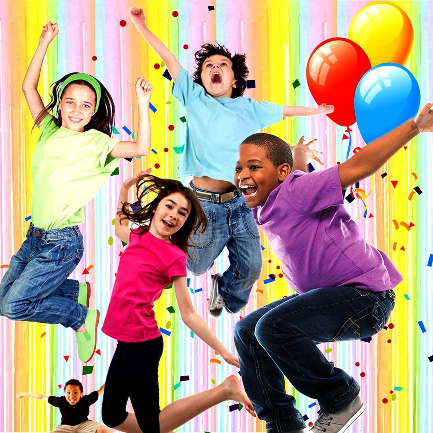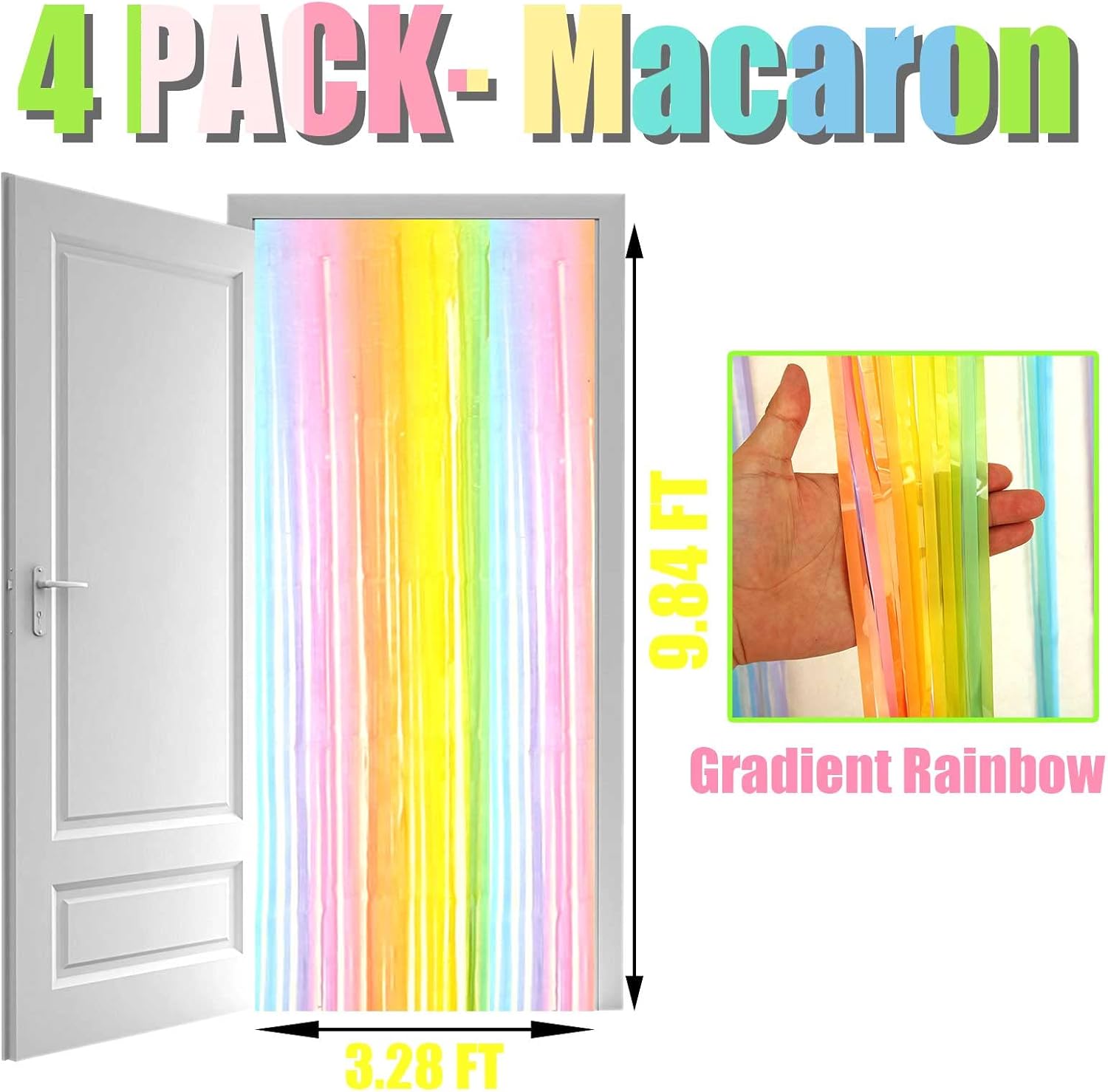 4 Pack Rainbow Foil Fringe Curtain Backdrop, 3.3Ft x 9.8Ft Colorful Metallic Tinsel Foil Streamers Curtains for Photo Booth, Wedding, Thanksgiving, Birthday, Christmas, Halloween Party Decoration