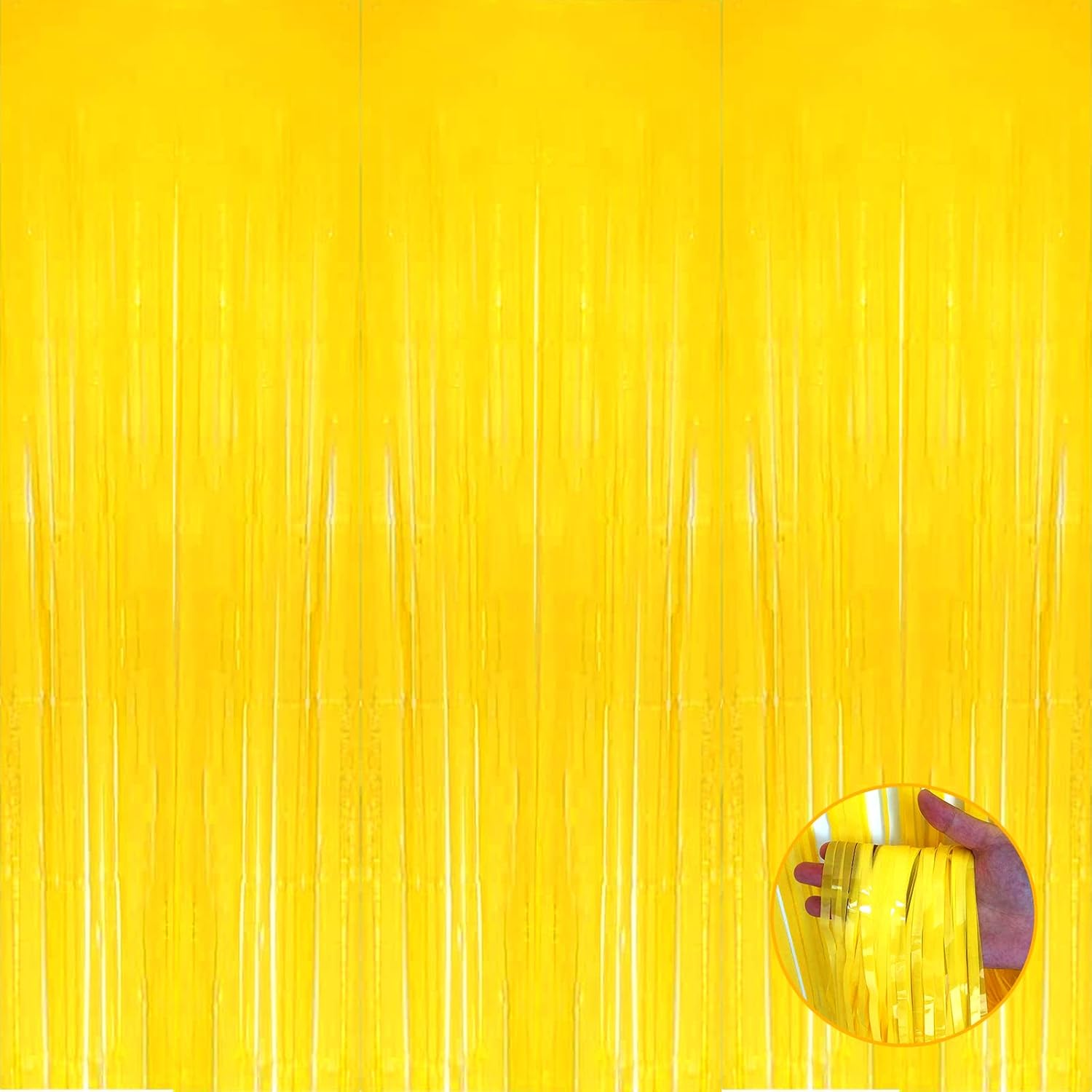 Pack Yellow Foil Fringe Curtain Backdrop 3.3Ft x 9.8Ft Metallic Tinsel Foil Fringe Streamers Curtains Photo Booth Wedding Thanksgiving Birthday Christmas Halloween Party Decoration