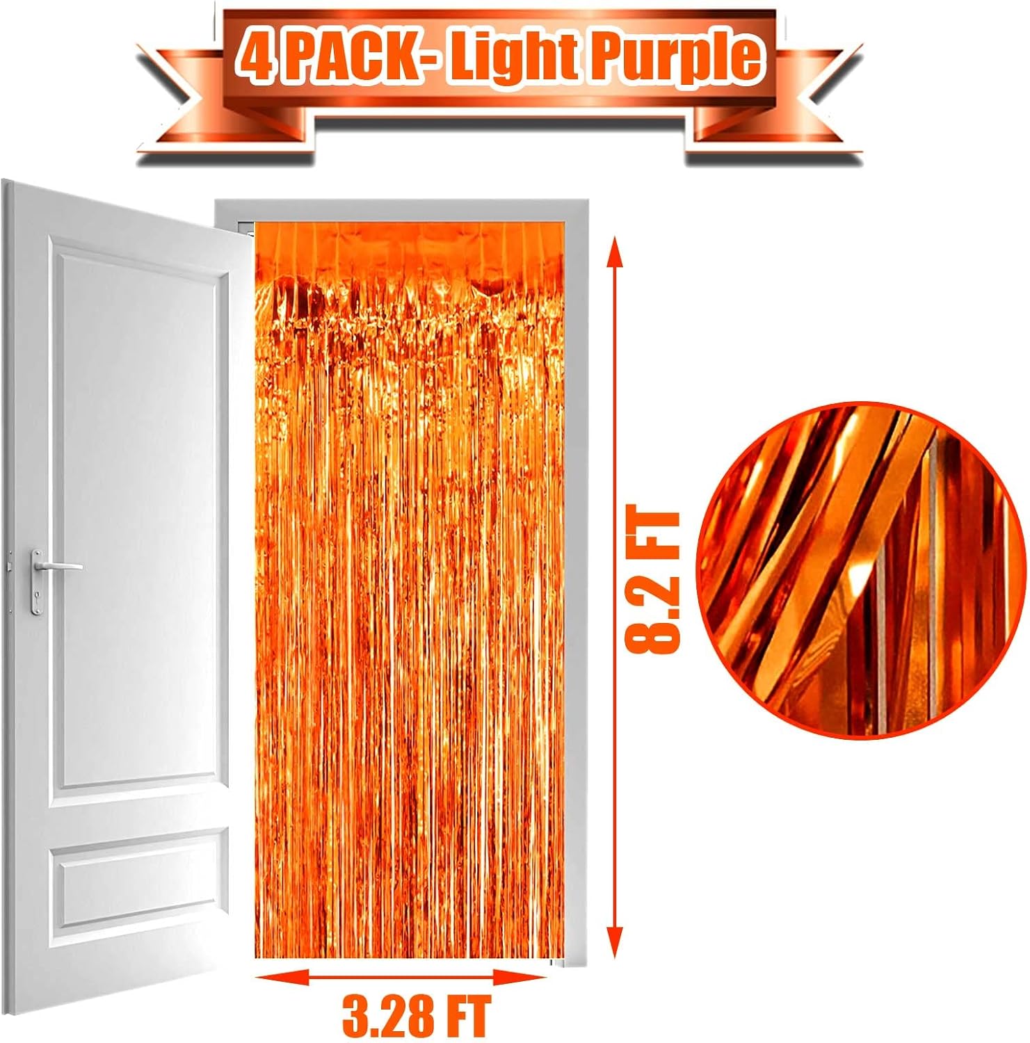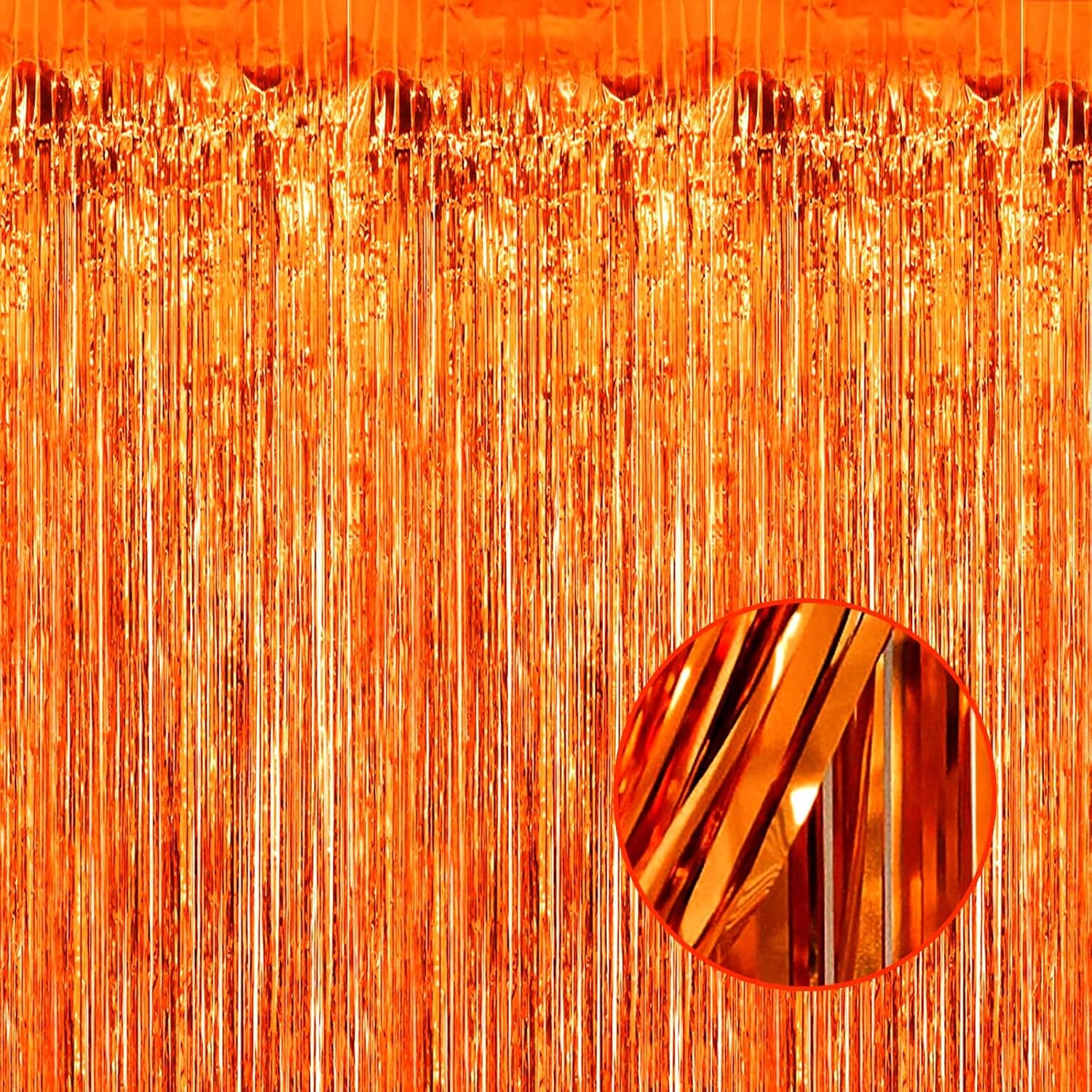 4 Pack Orange Foil Fringe Curtain Backdrop, 3.28Ft x 8.2Ft Metallic Tinsel Foil Fringe Streamers Curtains Party, Photo Booth Props, Birthday, 2022 Mother's Day Decoration Supplies