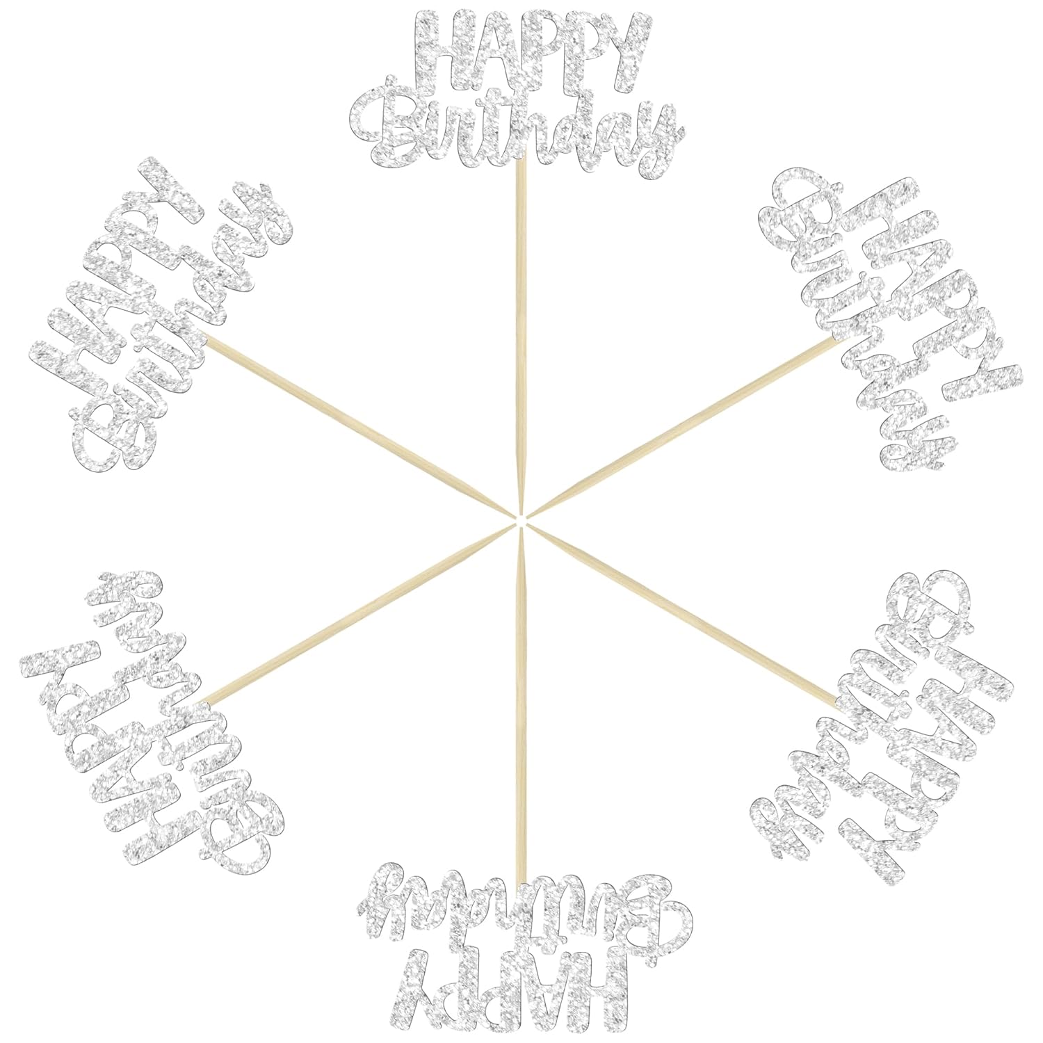 - ๐๐Package included: 24Pcs Silver Happy Birthday Cupcake Toppers. You can insert into your cake directly, which make your cake more interesting.