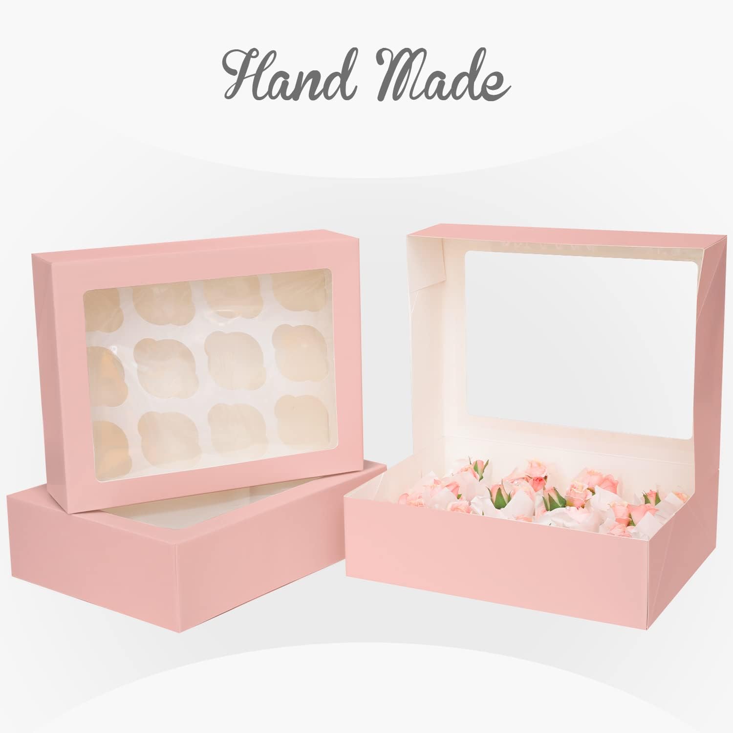 12 Cupcake Containers 10-Packs Pink Cupcake Box Cupcakes Carrier, 12 Cupcake Boxes with Window 13"x10"x3.5"(Auto-pop up)