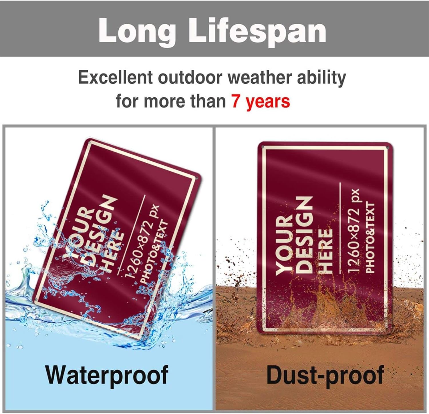 - Our metal signs are made of high-quality aluminum metal, it is rust-proof and durable, can be used for a long time and the text is clear and easy to read. The surface of the sign has a protective coating to withstand sun, snow, rain and cold.