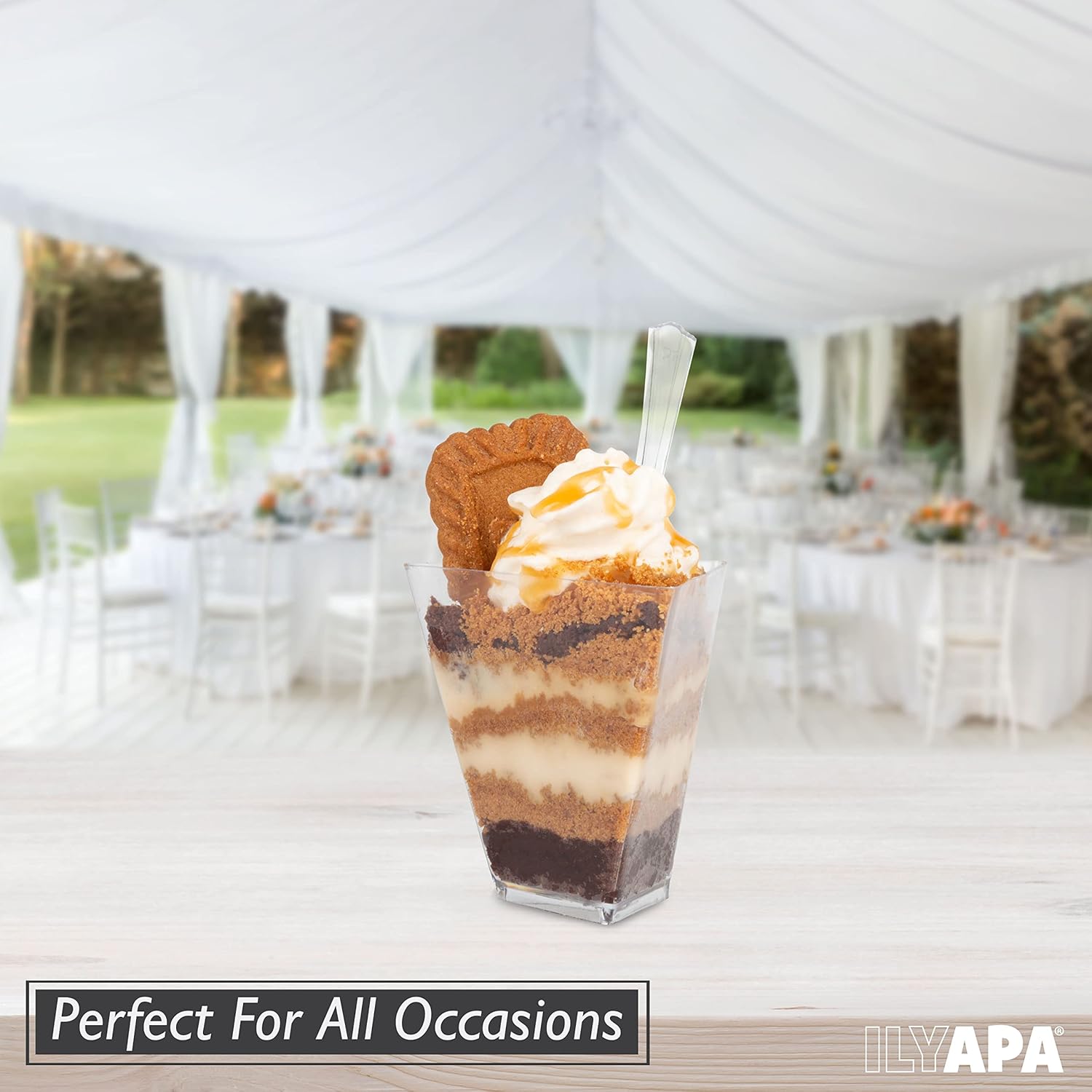 - Satisfaction Guaranteed - ILYAPA stands behind all of its products 100%. We use strong durable packaging to guarantee that your mini plastic dessert cups arrive in the best condition possible.