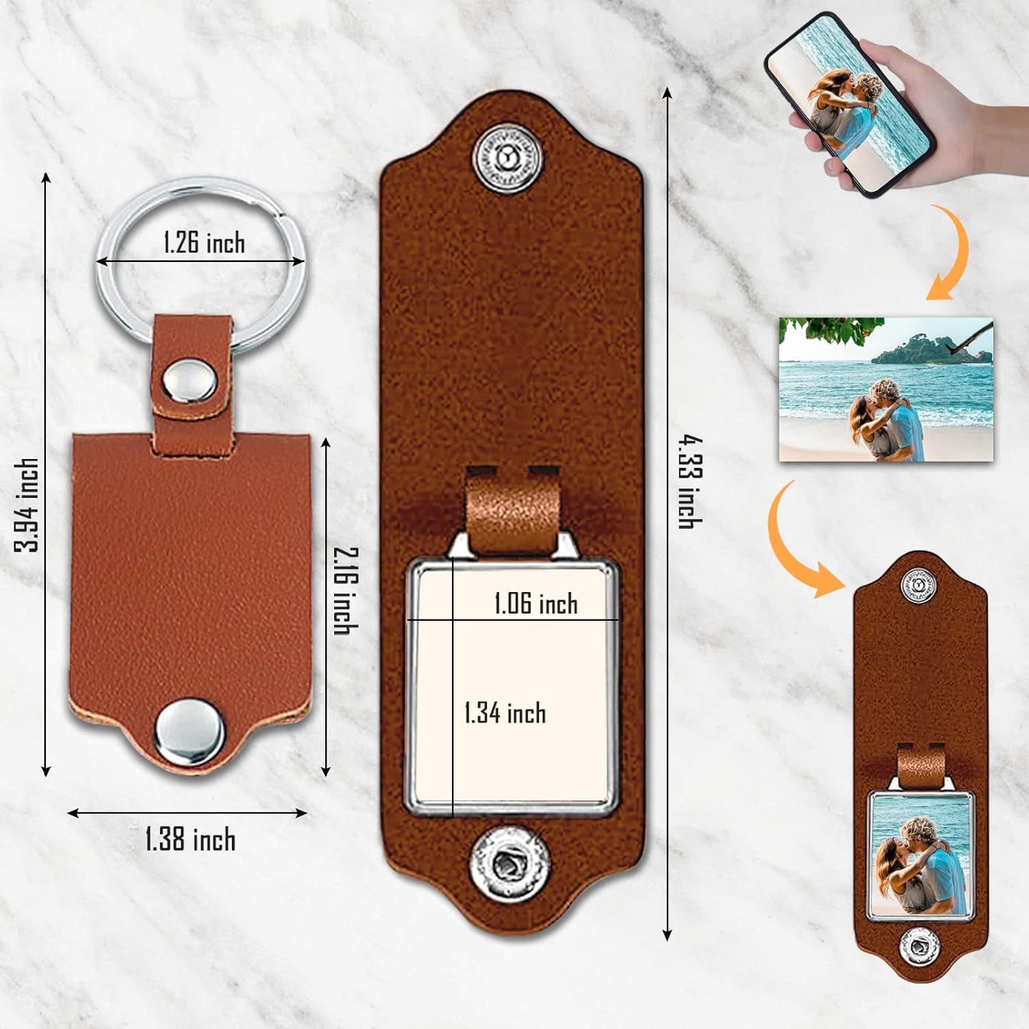 - 【High Quality Material】: This customizable leather keychain is made of leather and alloy. The photos and text you need to customize will be printed clearly, custom picture keychain with leather protection will not fade over time. It is a gift to accompany a lifetime.