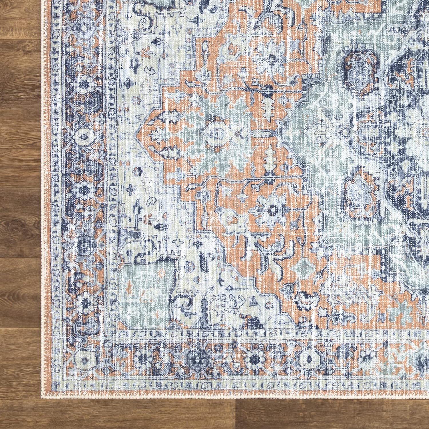 Bloom Rugs Washable Non-Slip 8' x 10' Rug - Peach/Blue Traditional Area Rug for Living Room, Bedroom, Dining Room, and Kitchen - Exact Size: 8' x 10'