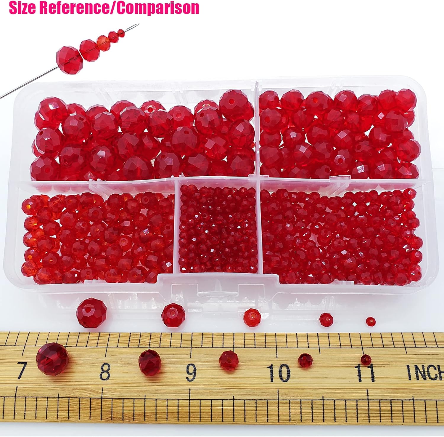 - 【PACKAGING and SIZE】Package includes 810Pcs red rondelle crystal glass beads in 5 different sizes ,400pcs 2mm,200pcs 4mm,100pcs 6mm,65pcs 8mm and 45pcs 10mm faceted rondelle crystal glass beads.Sufficient quantity and various sizes to meet your various needs, you can combine them together to create delicate handicrafts according to your own preference.In addition, we provide you with some stretchy cord and add an organza bag.Let your family and friends enjoy DIY happy time together.