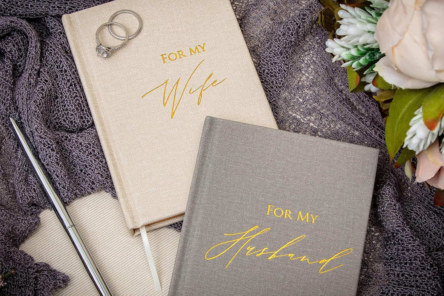 - One says "For My Husband" and one says "To My Wife". Each notebook has a dimension of 5.75 x 4 x 0.5 inches and contains 80 lined pages with gold gilding on the edges.