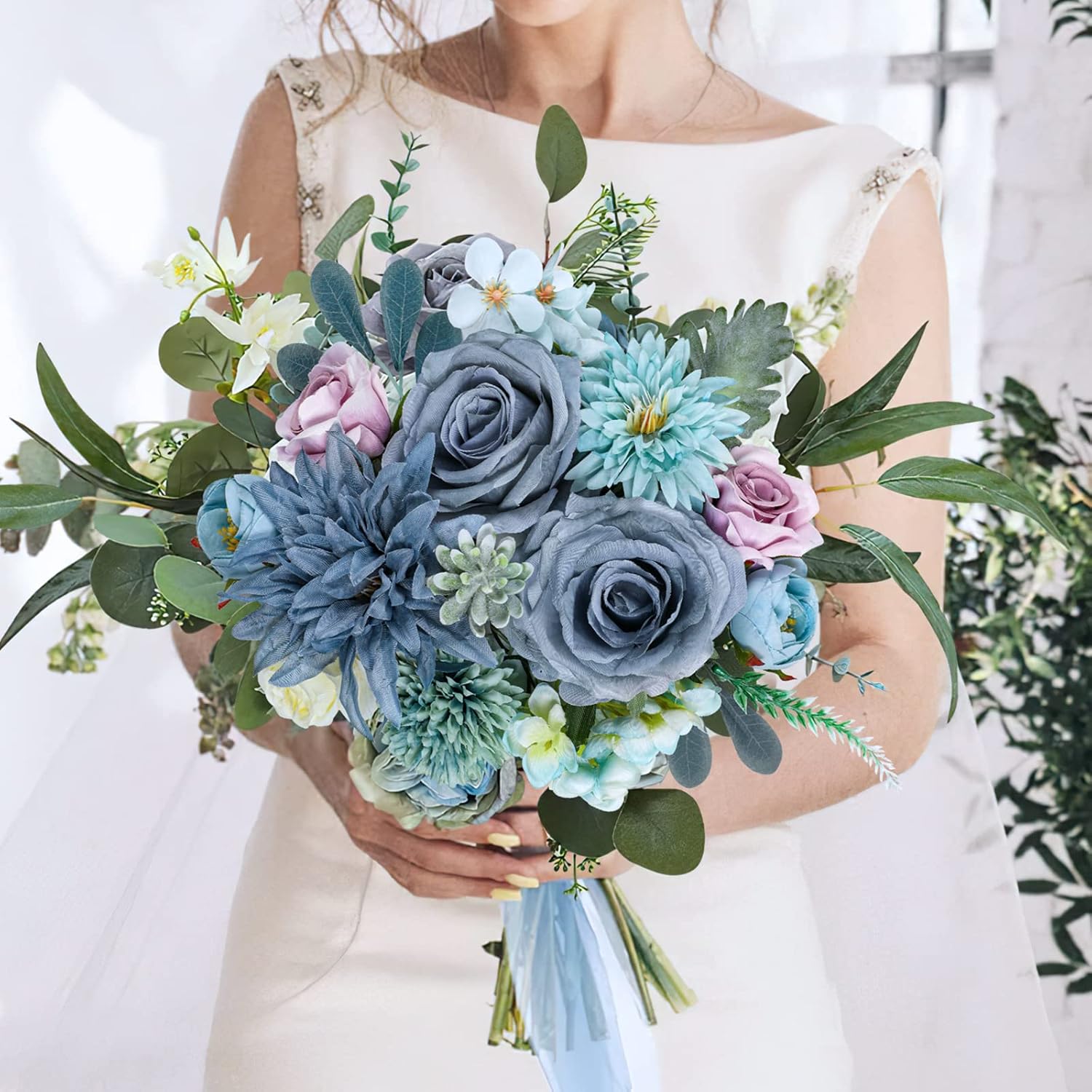 AmyHomie Blue Artificial Flowers Combo Silk Mix Peony Rose Hydrangea Fake Flowers w/Stem for DIY Wedding Bouquets Centerpieces Arrangements Table Decor Party Bridal Baby Shower Home Decorations