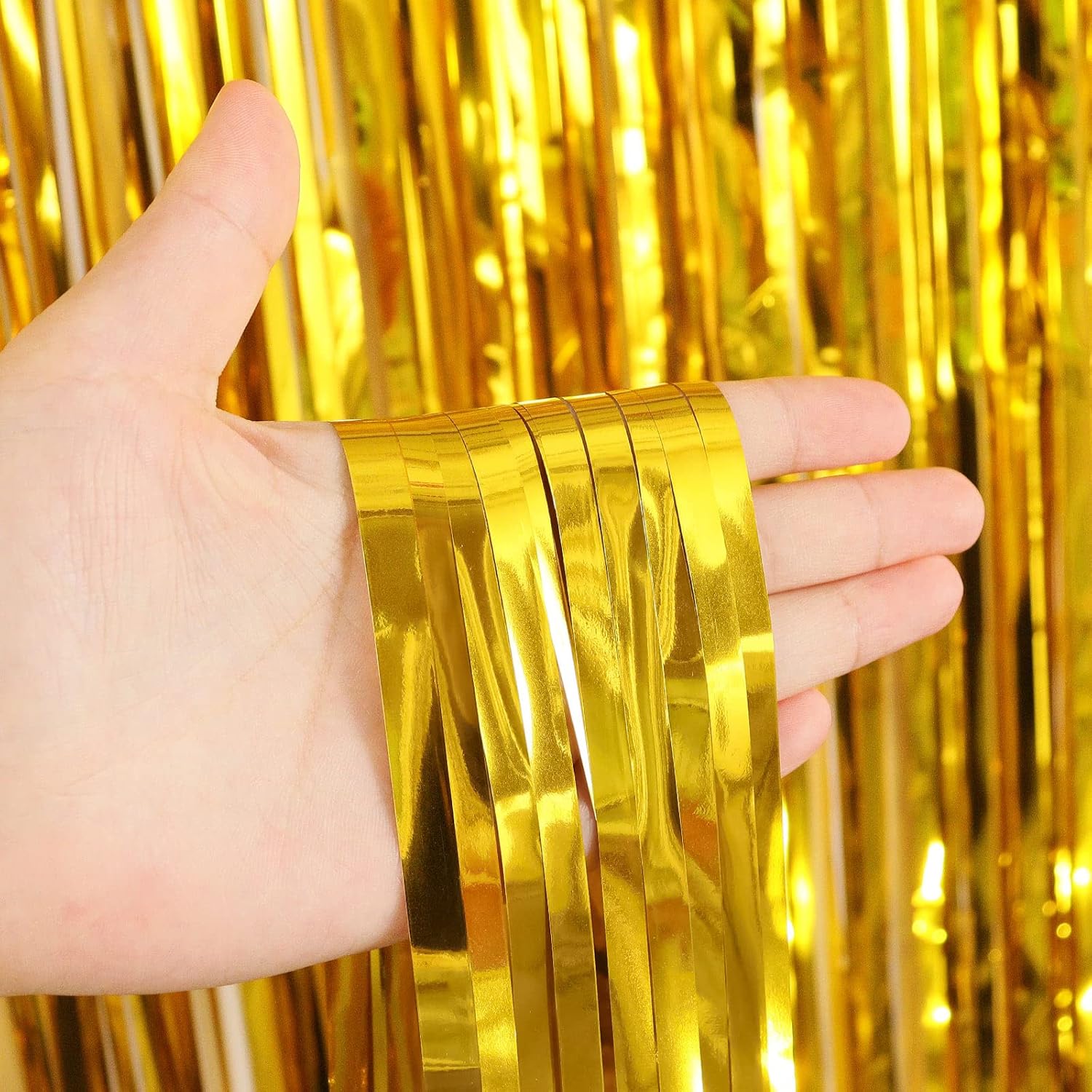 2 Pack Gold Fringe Curtains Foil Shiny Fringe Backdrop Tinsel Door Streamers Foil Curtains for Birthday Wedding Engagement Bridal Shower Celebration Party Decorations Large
