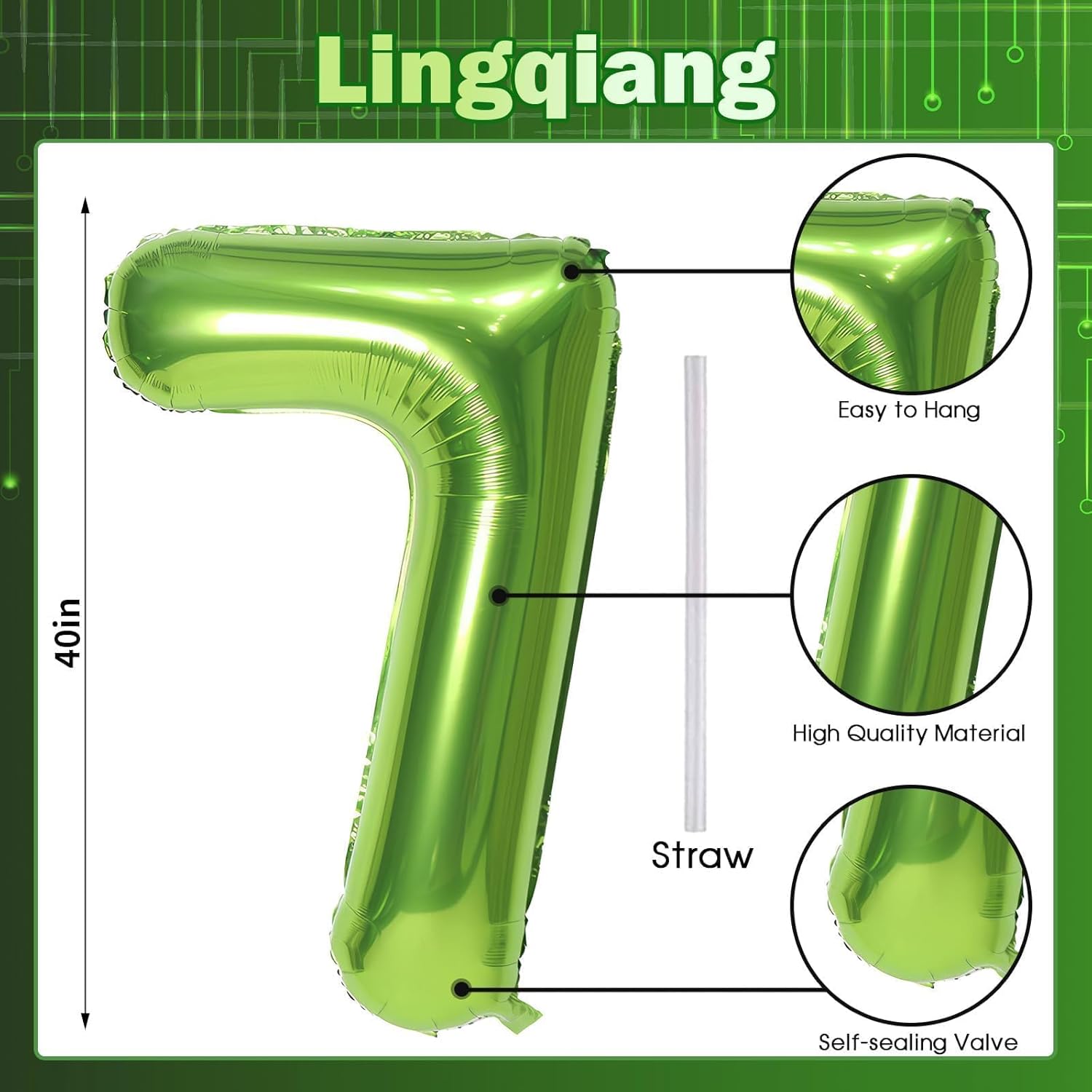 - π Green Number 7 Balloon π - You will get 1pc 40 inch mylar foil number 7 balloon and 1pc straw. Perfect for 7th 17th 27th 70th 75th birthday or anniversary party decorations supplies.