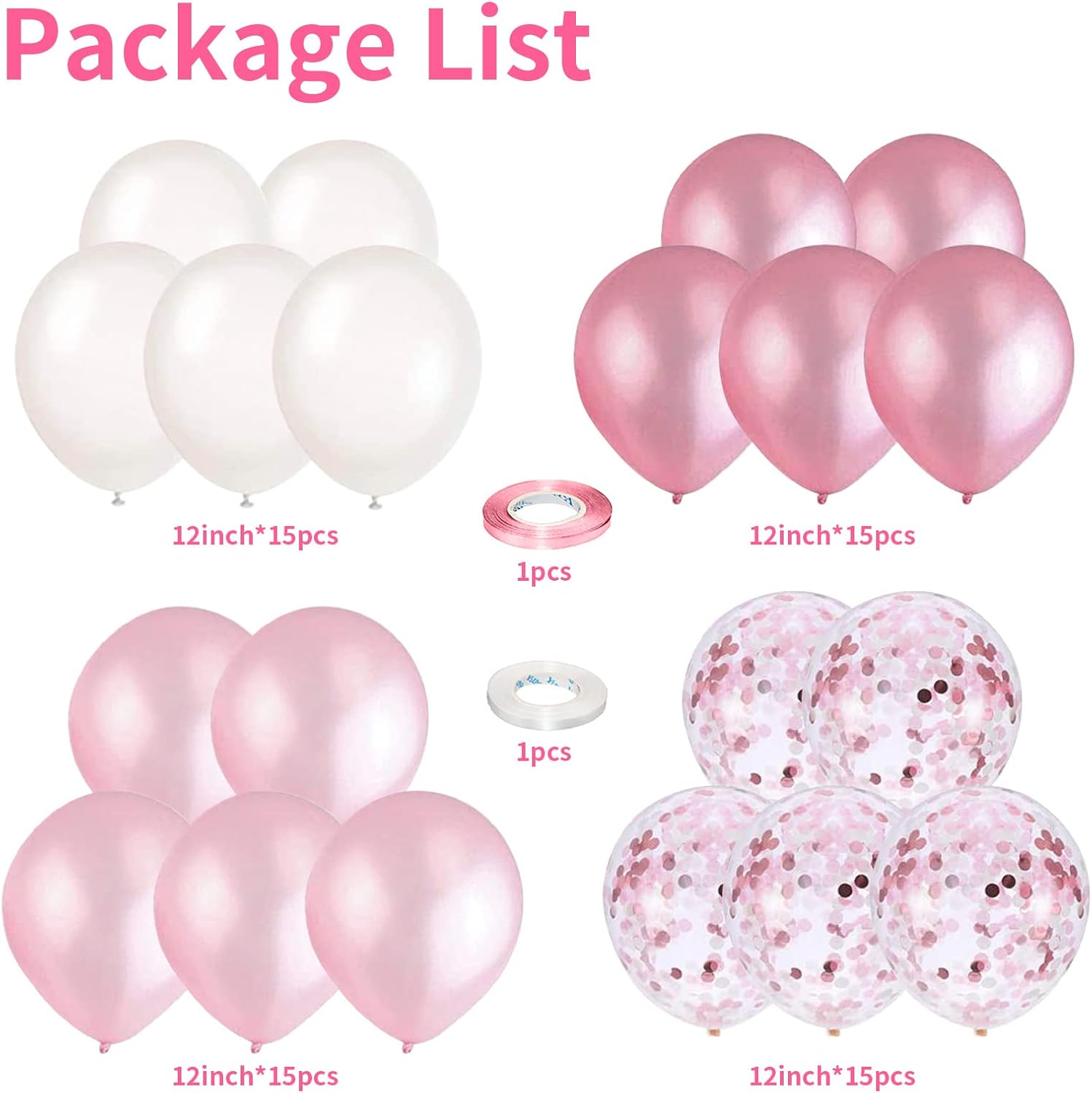 - All-IN-ONE Decoration Includes: 60pcs balloons and ribbons. All our party balloons are shipped in vacuum packaging to prevent them from being oxidized during transportation.