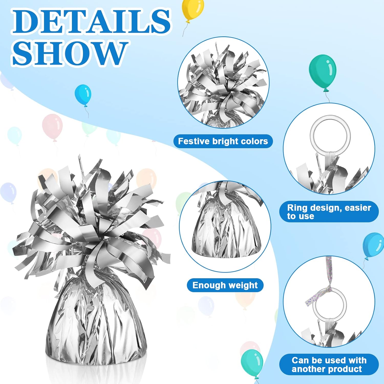 - Quality Material: these balloon weights metallic anchor for table are mainly made of quality PET material with the weight of about 150 g/ 5.3 ounce, and ribbon is mainly made of quality PP plastic, which are safe and reliable, strong and sturdy, not easy to fade or break, can be applied for a long term