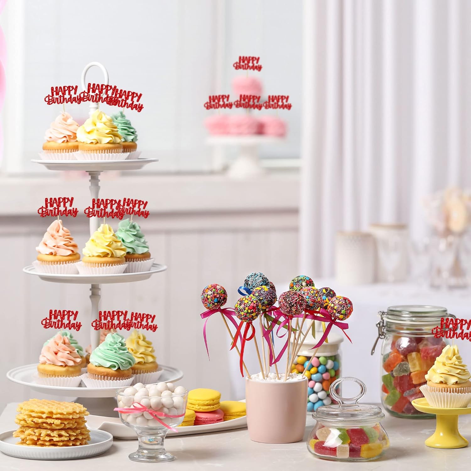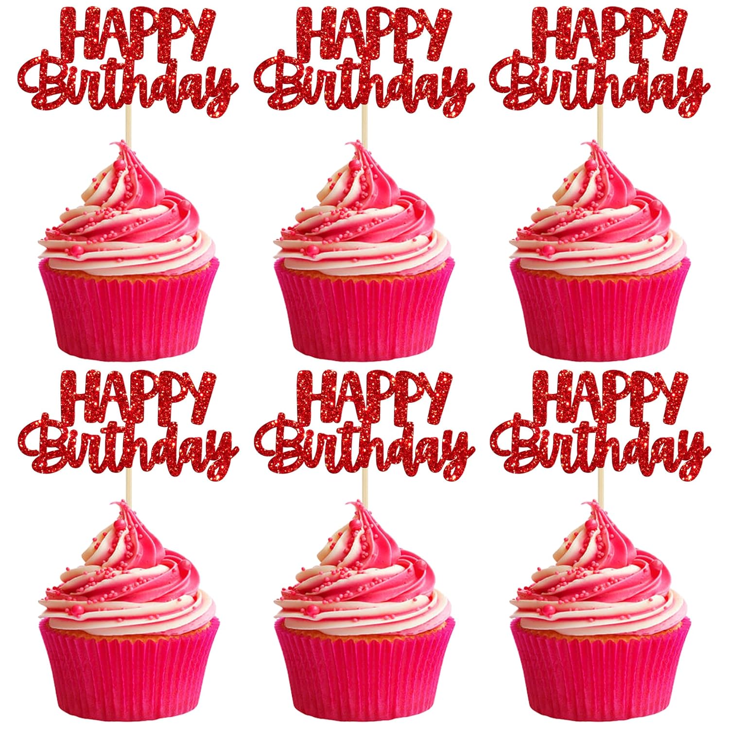 - ๐ Premium Material: These glitter happy birthday cupcake Toppers are made of high quality paper and food-grade toothpick, very safe to put them on cakes, cupcakes, ice cream, fruits, pie, dessert, cheese or any dish and food appetizer you want to decorate.