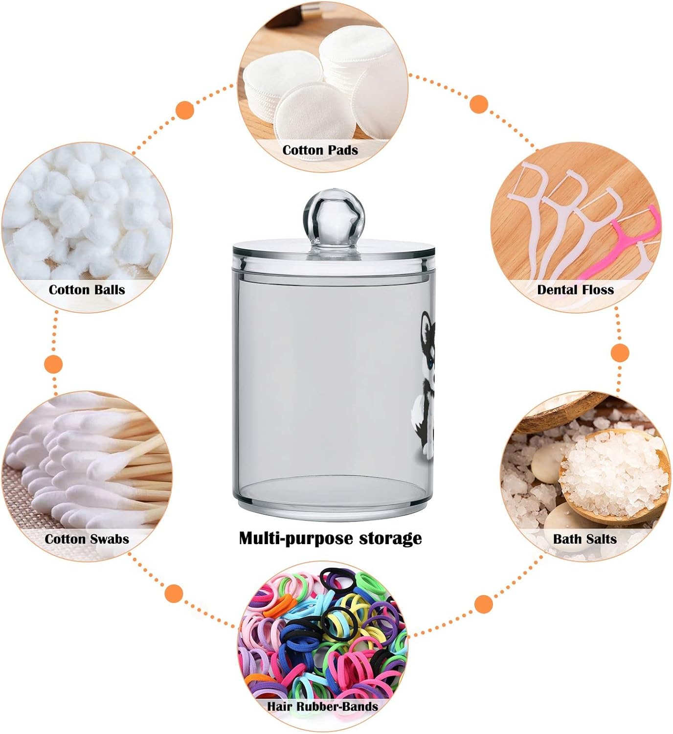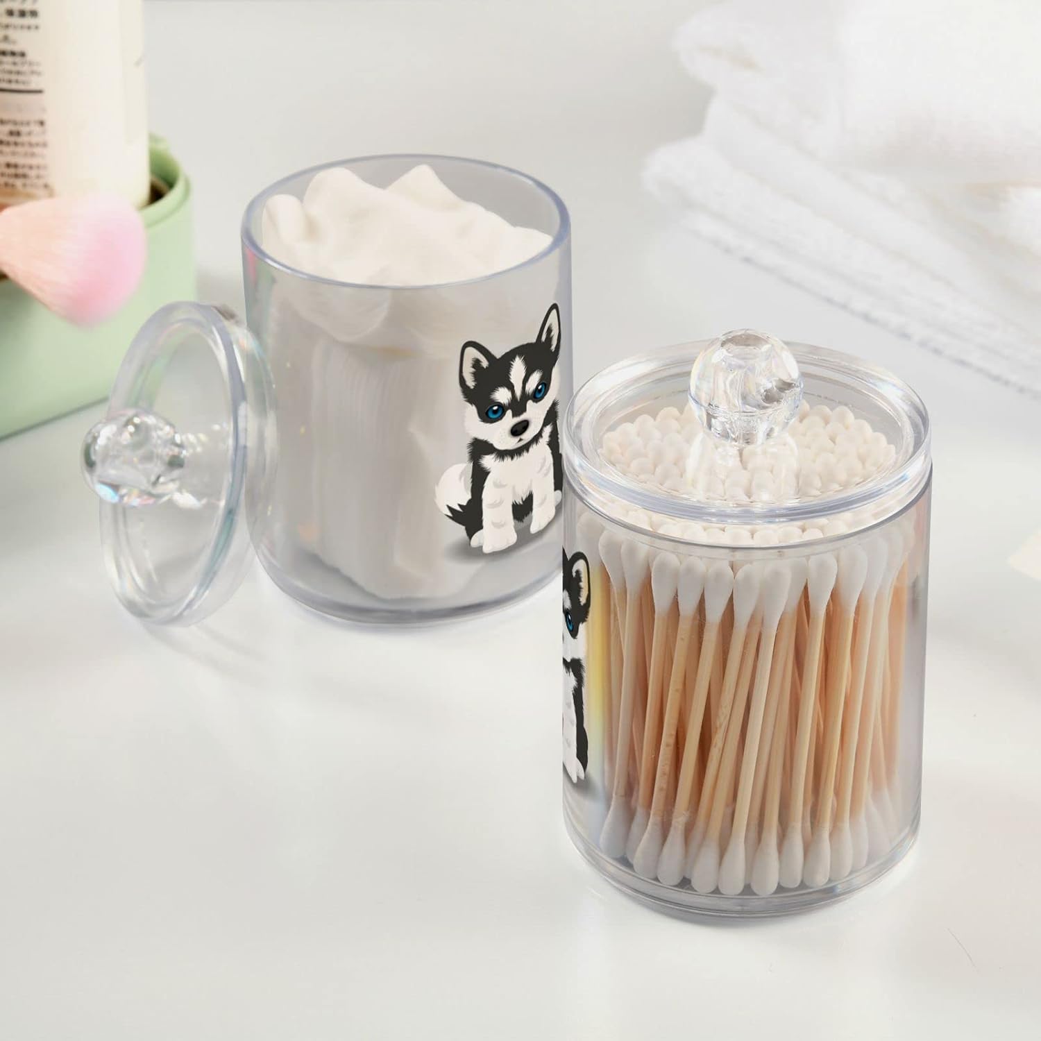 2 Pack Qtip Dispenser Apothecary Jars Dog Bathroom Organizer, Siberian Husky Puppy Qtip Holder Storage Canister Plastic Acrylic Jar for Cotton Ball/Swab/Rounds