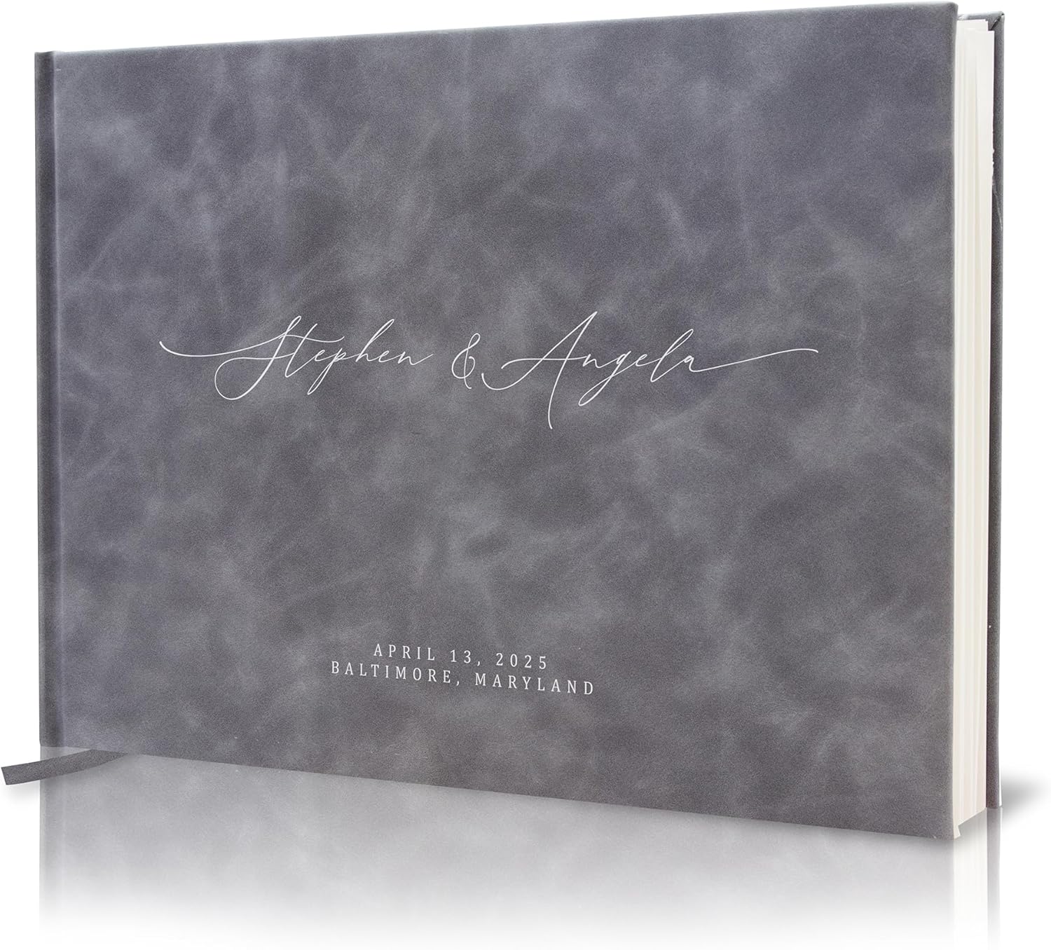 MUUJEE Personalized Guestbook in Slate Gray - Premium Custom Modern Guest Book for Wedding Reception, Birthday Party or Events w/Bookmark Blank Pages for Signing 11.5 x 8.5 inches