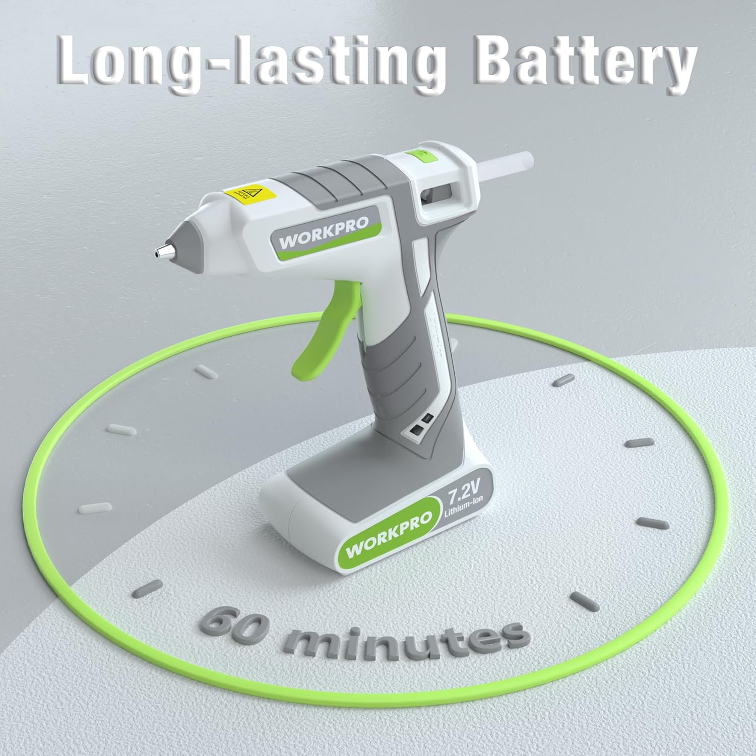 WORKPRO 7.2V Cordless Hot Melt Glue Gun, Rechargeable Fast Preheating Glue Gun Kit with 20 Pc Premium Mini Glue Stick, Automatic-Power-Off for Art, Craft, Decoration, USB Type-C Cable Included