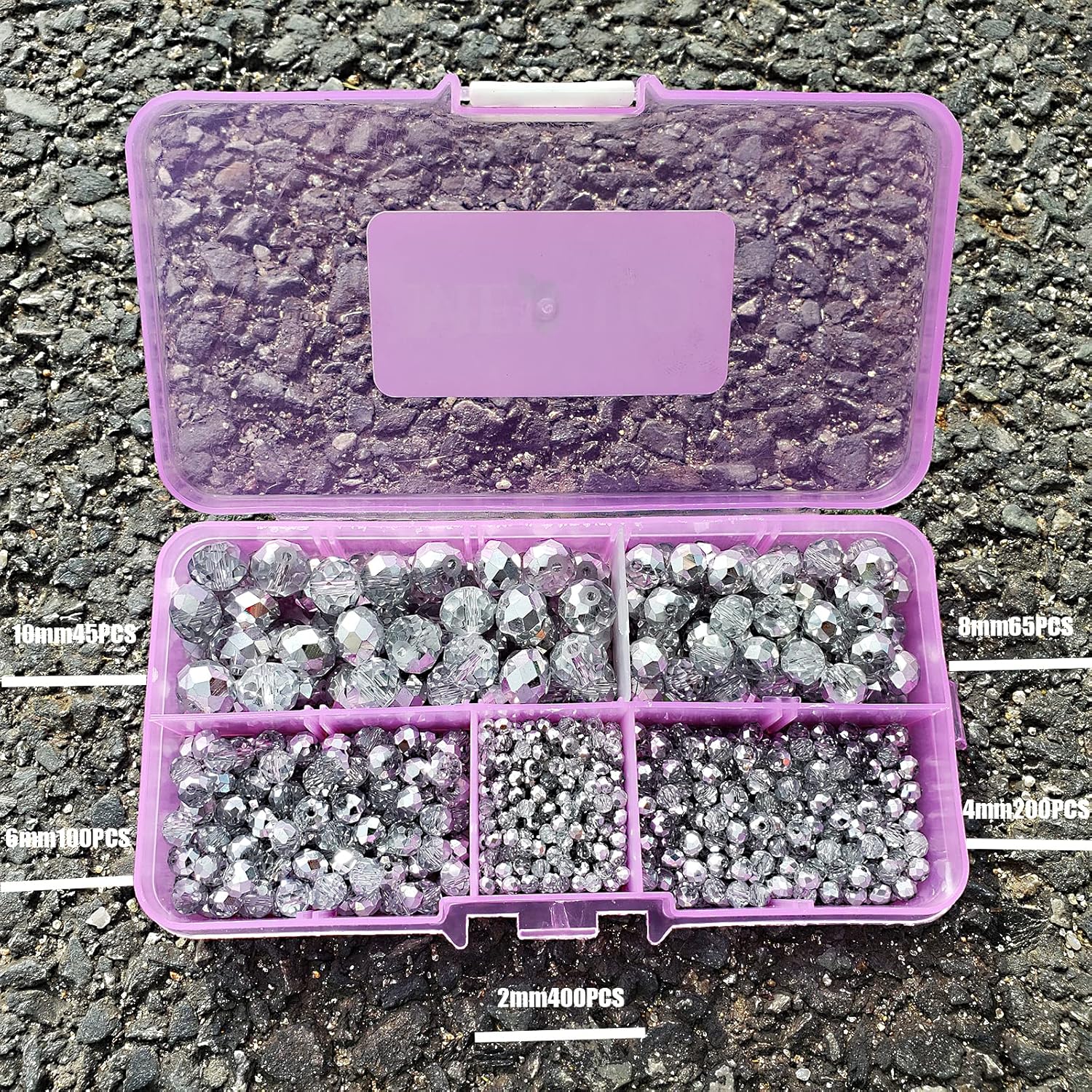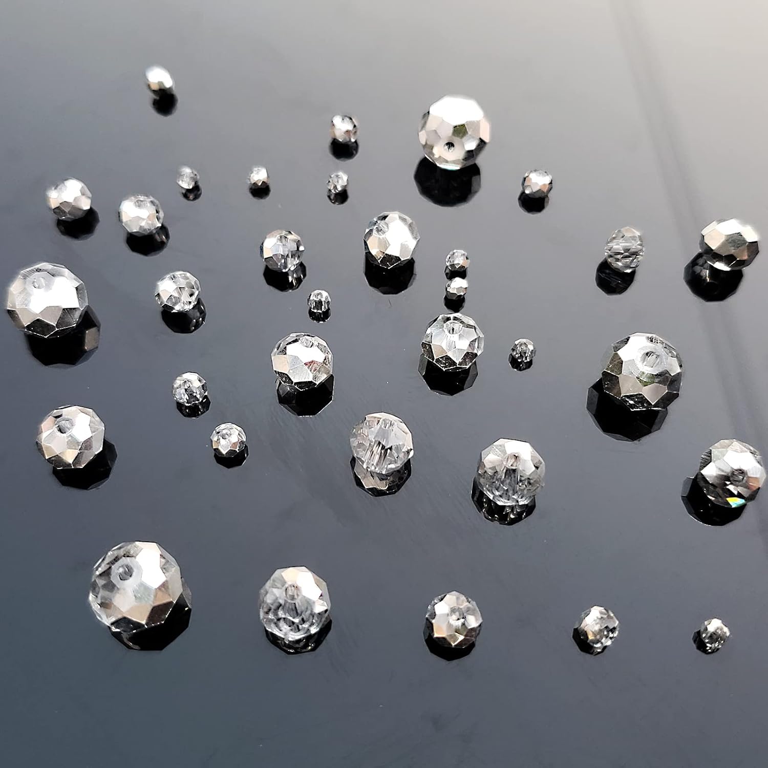 - 【PACKAGING and SIZE】Package includes 810Pcs half silver rondelle crystal glass beads in 5 different sizes ,400pcs 2mm,200pcs 4mm,100pcs 6mm,65pcs 8mm, 45pcs 10mm faceted rondelle crystal glass beads.Sufficient quantity and various sizes to meet your various needs, you can combine them together to create delicate handicrafts according to your own preference.In addition, we provide you with some stretchy cord and add an organza bag.Let your family and friends enjoy DIY happy time together.