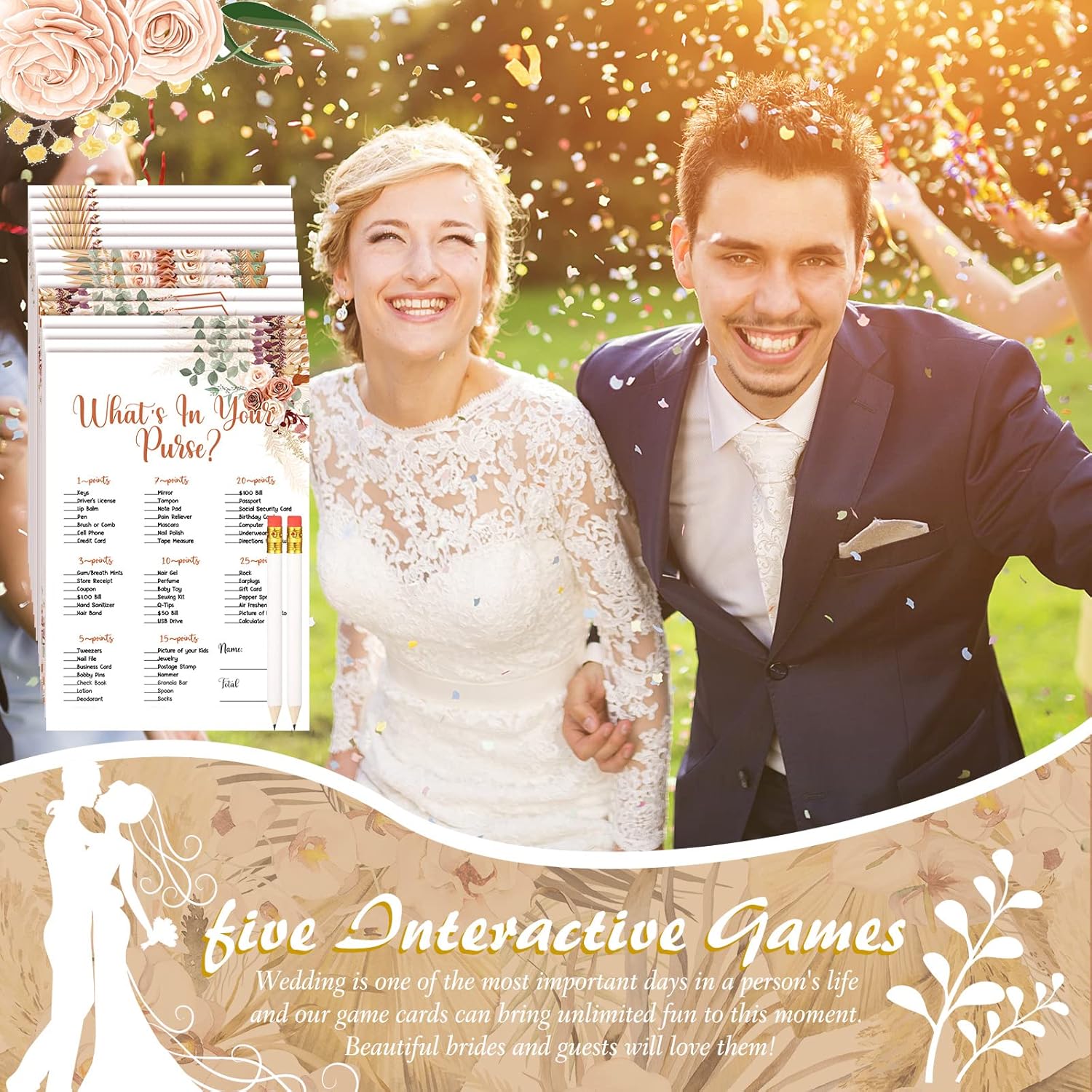 - 5 Styles of Fun Bridal Shower Games: our game bridal shower cards contain 5 fun games, including "Would She Rather", "Bride Or Groom Guess Who", "Bridal Word Scramble", "Wishes For The Bride And Groom", "What's In Your Purse"; These cards provide your guests with a fun wedding game to help them fully enjoy the party and elevate the mood