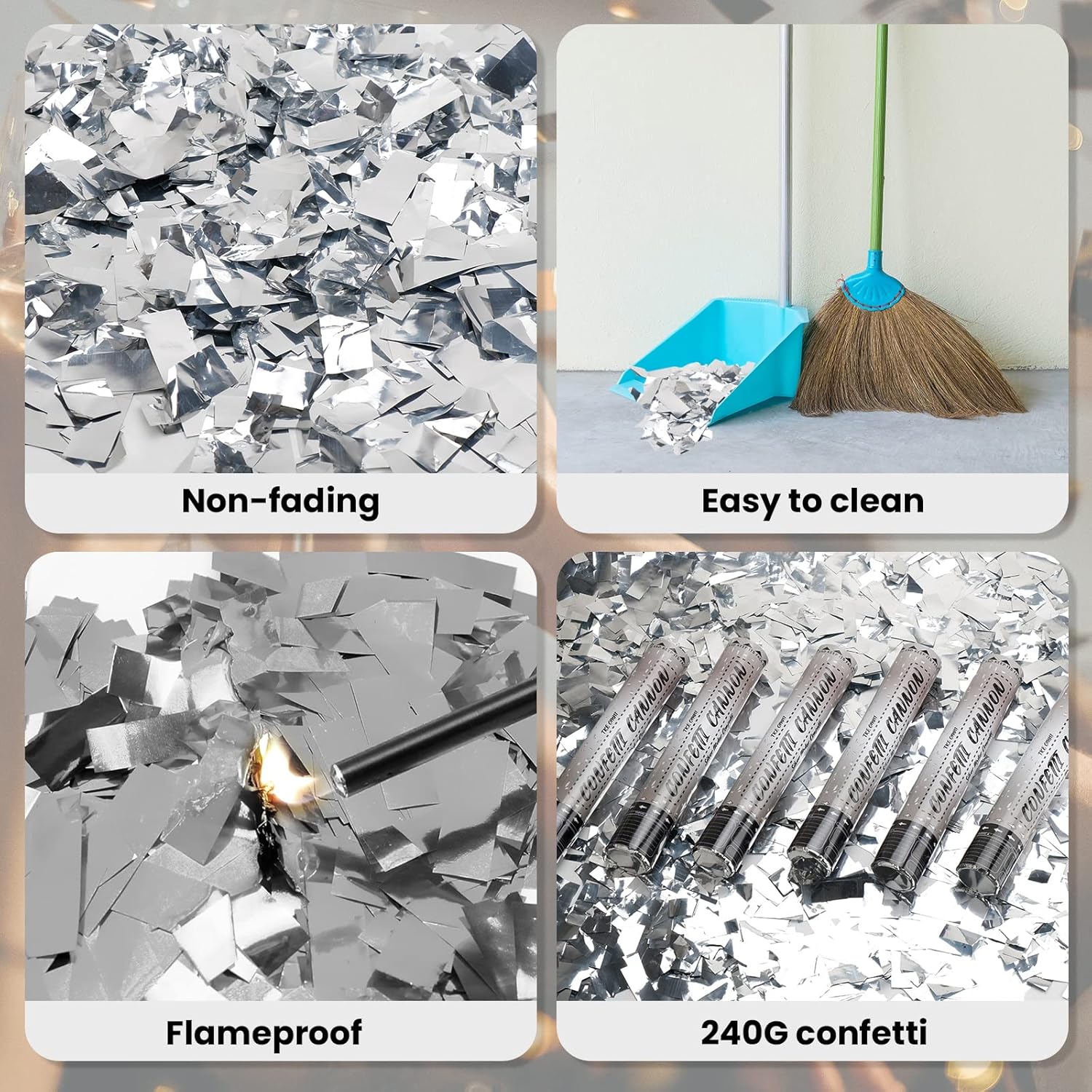 - π Mega-Value Confetti Cannons: We offer you a set of premium confetti poppers at a price that won't break the bank. Each large confetti cannon is 12 x 2 inches (30 x 5cm), filled with exciting confetti made of fireproof and non-fade silver mylar!