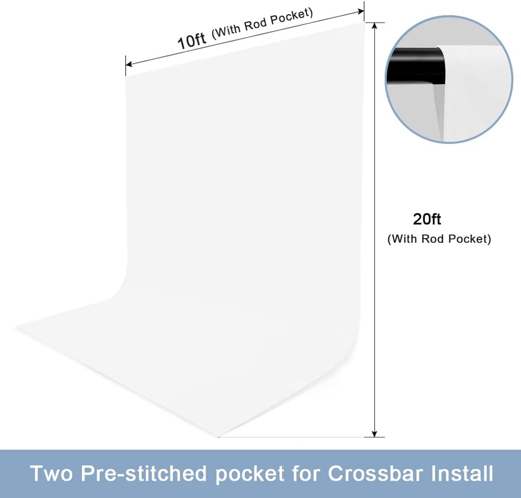 - 【PACKAGE INCLUD & WARRANTY】1pc 10x20ft white backdrop and 4 spring clamps in package; Backdrop stand NOT included. 24-hour friendly customer service, 12 months after-sales quality assurance, please kindly contact us if any question.