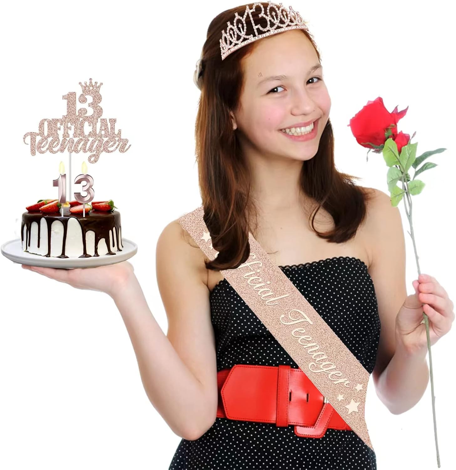 13th Birthday Decorations for Girls, Including 13th Birthday Crown/Tiara, Official Teenager Sash and Cake Topper, Number Candles, 13 Year Old Girl Gifts