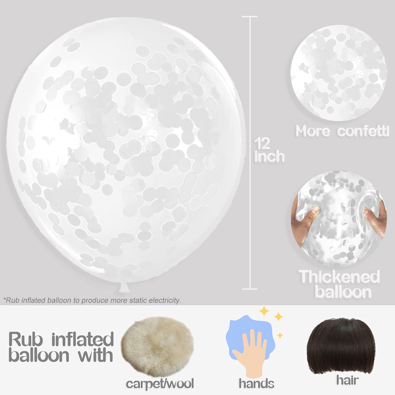 White Confetti Balloons, 25 Pcs Thickened 12 Inch Clear Latex Balloon with Confetti Inside for Graduation Engagement Bridal Shower Party Baby Shower Gender Reveal Birthday Party Decoration Supplies