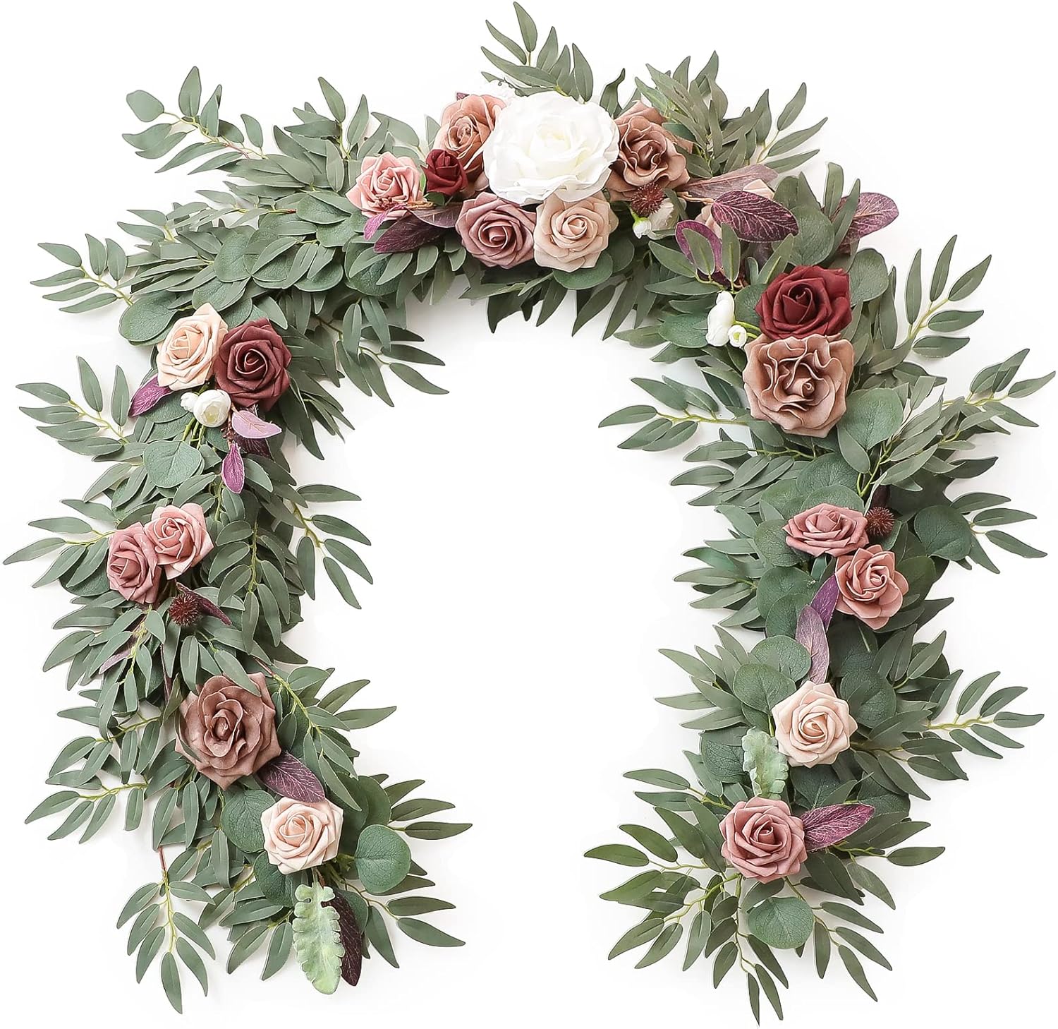 - ❤️Eucalyptus and Willow Flower Garland: Package includes a 6ft garland that perfectly blends realistic and natural flowers with eucalyptus leaves and willow. It will seamlessly create a romantic and charming atmosphere for your wedding.