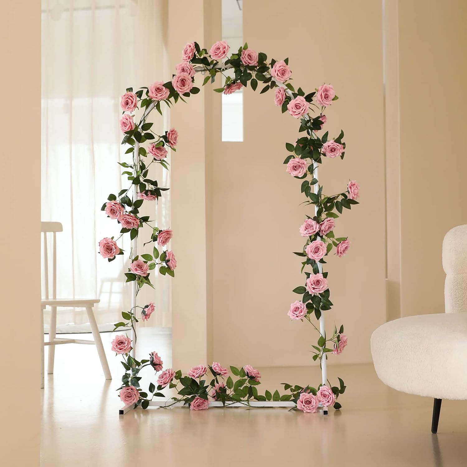 - USE: These hanging rose flower vines for couch backdrop, room makeover, window hanging decor, living room, kitchen, farmhouse, table centerpiece, wall decor, jungle theme party supplies accessories, sweet 16 party, bedroom, greenery backdrop, patio trellis, outdoor arch, wedding, backyard, balcony and so on.