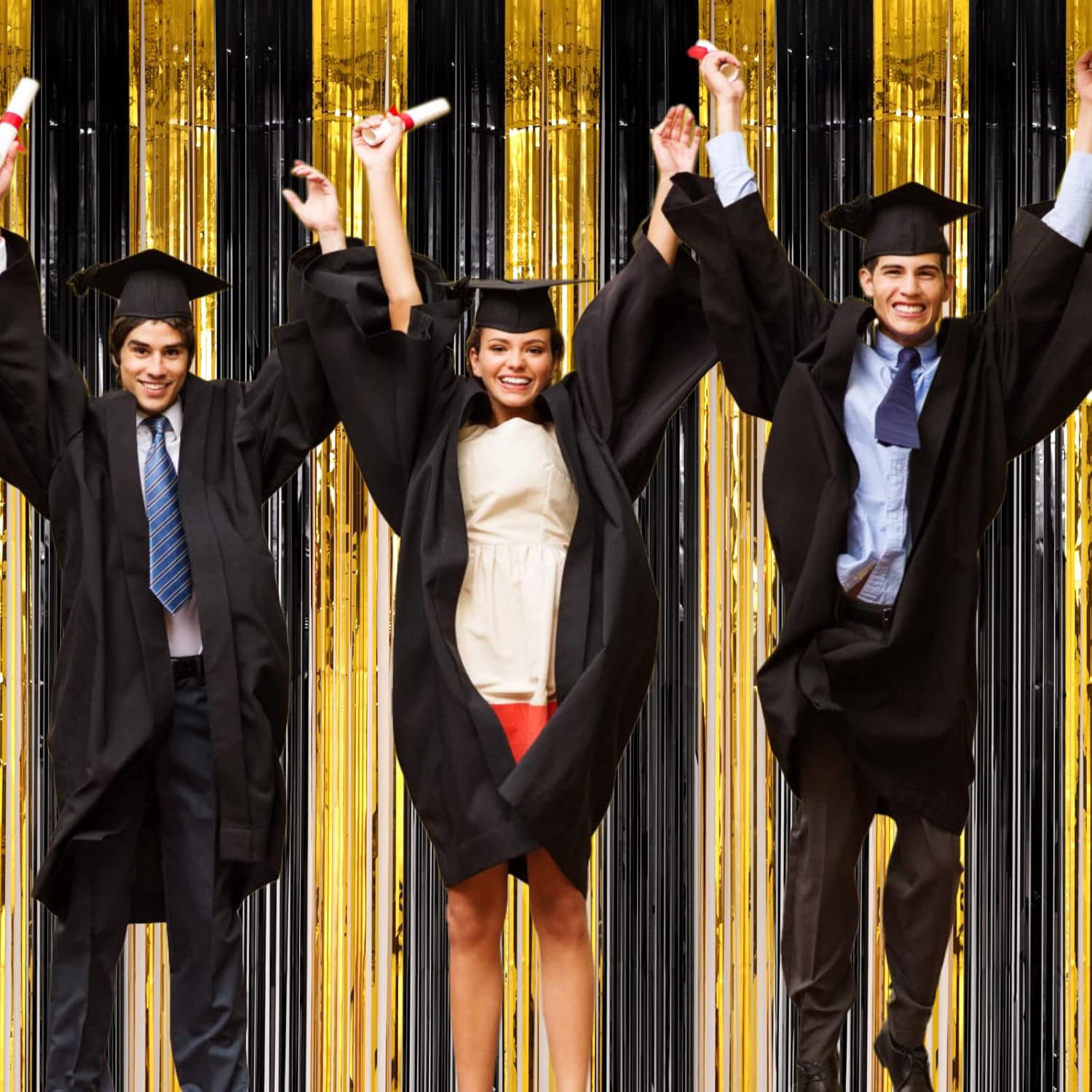 4 Pack Black and Gold Foil Fringe Backdrop Curtains, Tinsel Streamers Birthday Party Decorations, Fringe Backdrop for Graduation, Baby Shower, Gender Reveal, Disco Party