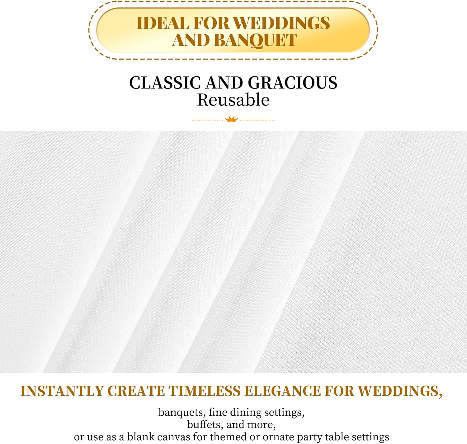 - 【Premium Tablecloth Fabrics】You can get 12 pieces white tablecloth, our tablecloth is made of soft premium polyester fabric that resists wrinkling for an always crisp, polished look. These materials are as skin-friendly as they are environmentally friendly. Excellent to protect and decorate your tables.