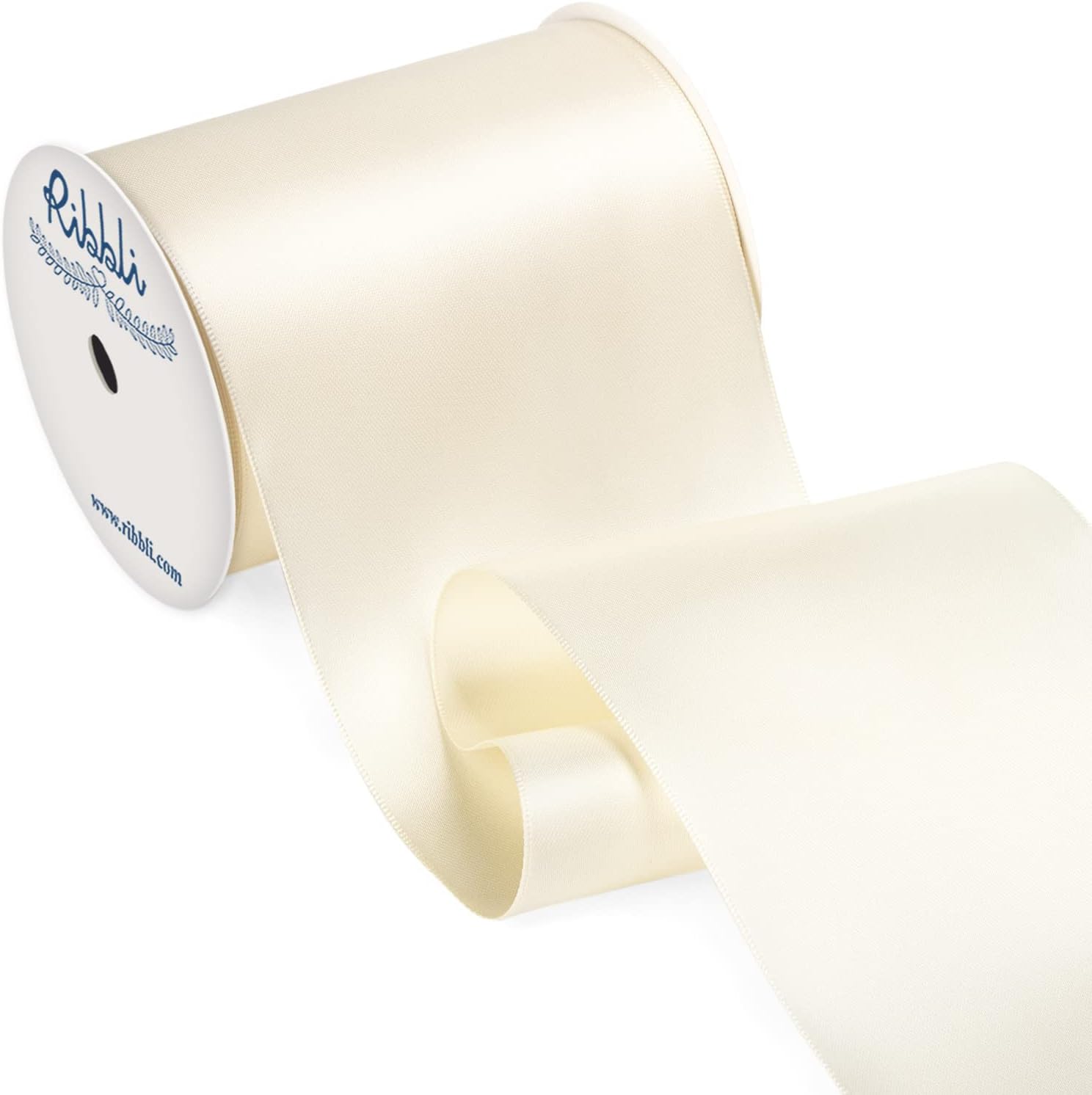 Ribbli Ivory Satin Ribbon 4 Inch Wide Ivory Ribbon for Wedding Chair Sash Grand Opening Ceremony Big Bows Gift Wrapping Floral Crafts Cake Decor-Double Faced Satin Continuous 10 Yards