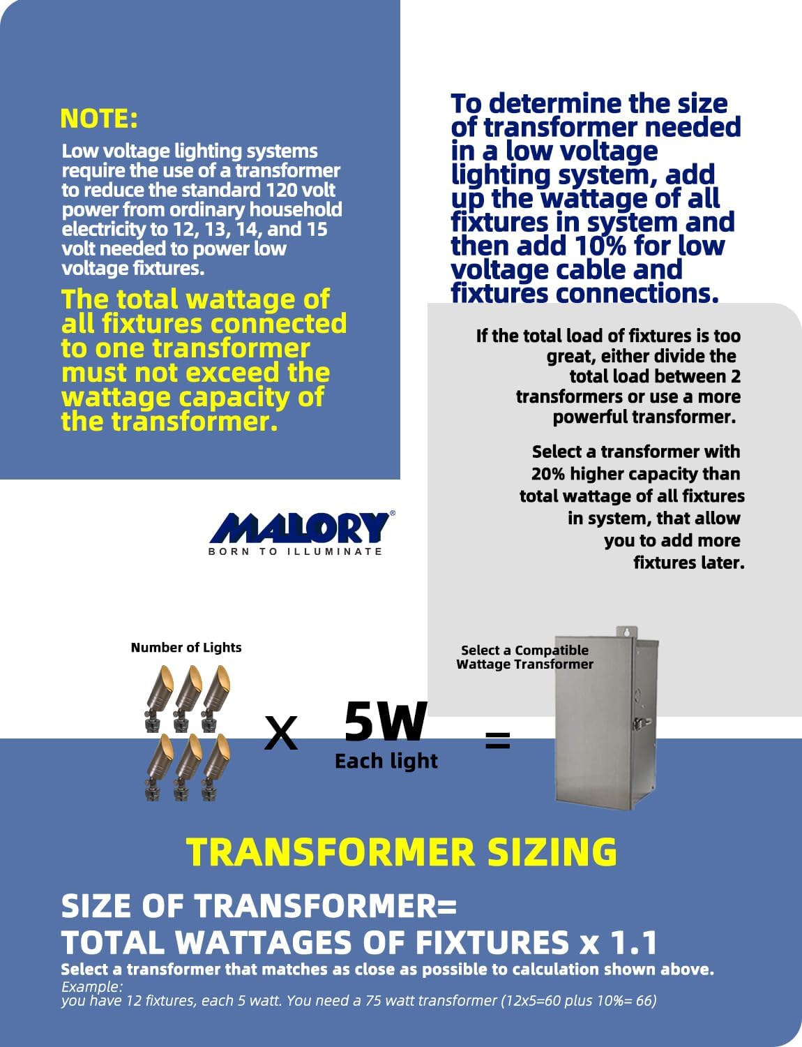 - LIFETIME WARRANTY:MALORY landscape lighting are built to the highest standards of construction and performance, we extends an industry-best lifetime warranty on its brass fixtures and 50,000 hrs for the LED bulbs.Please contact us if you have any issue, we will offer top rated customer service for you.