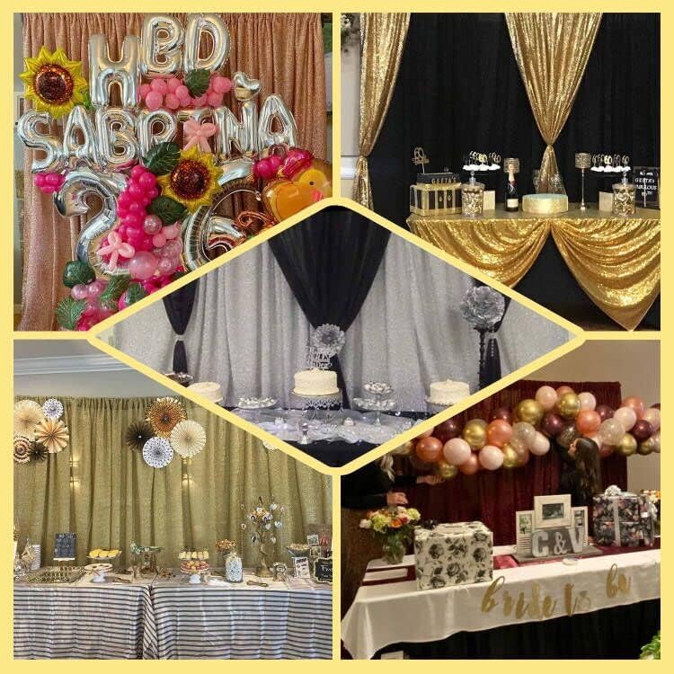 - [Suitable for multiple scenes] Polyester stretch sheer background curtains can be used for parties, baby shower, weddings, birthday parties, holiday parties, engagement parties, photography backdrops, anniversaries, graduation ceremonies, home decorations, stage curtains and more! If you have any questions, you can find us through Amazon and we will try our best to help you solve the questions!