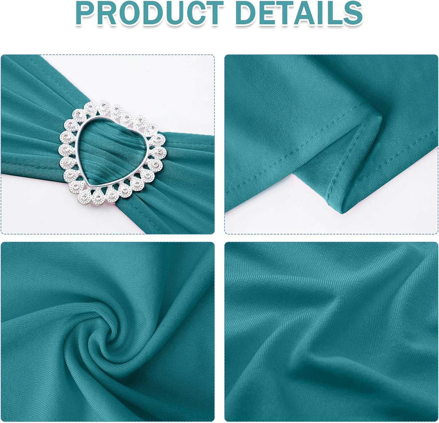 Howhic Pack of 60 Spandex Chair Sashes Bows Stretch Chair Cover Band with Buckle Slider Universal Elastic Chair Ties for Wedding Banquet Party Event Decoration (Turquoise)