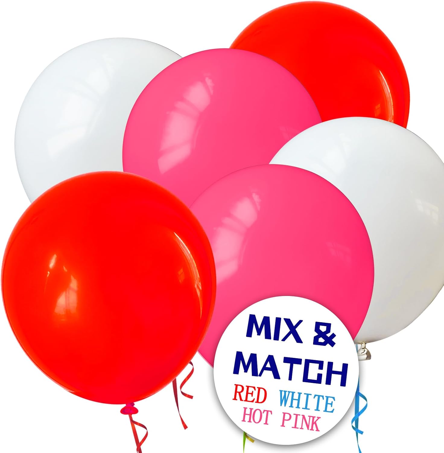 - Order us you will get 110pcs 12 inch hot pink baloons and 2 rolls of ribbons in random colors.