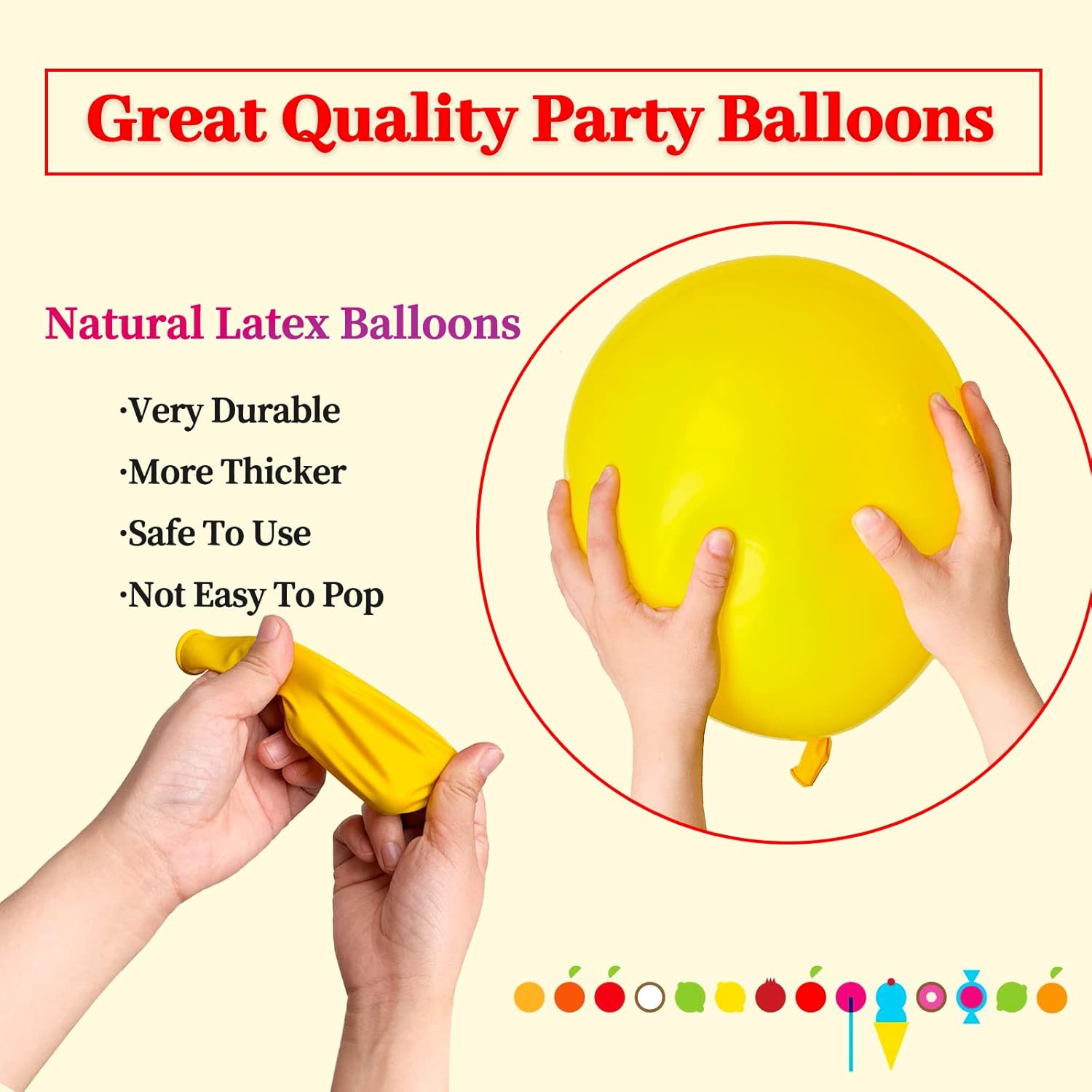 - Our yellow 12 inch balloon is made of thickened latex, the color is bright yellow, these yellow balloons can be used as balloons decorations for birthday party, and play around children.