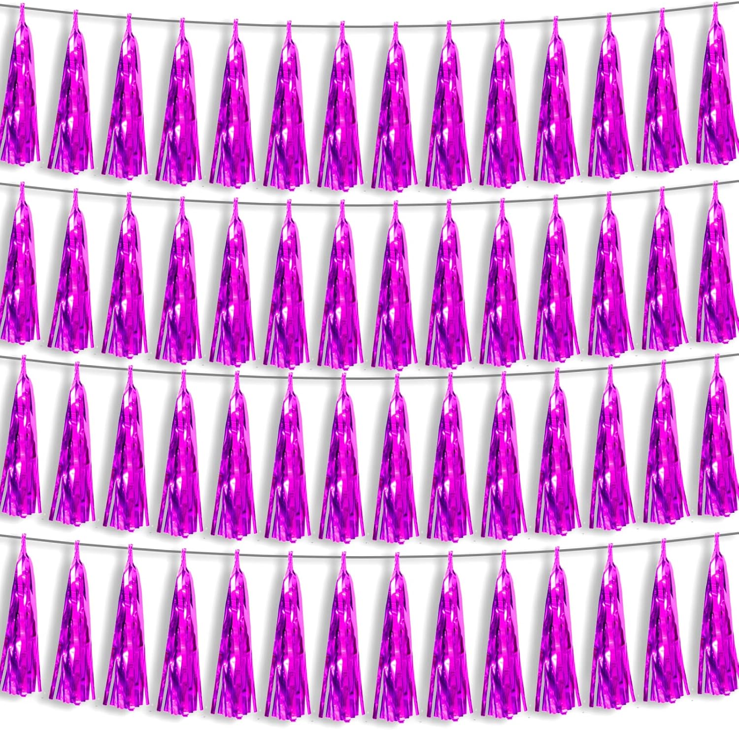 • 【Rose Red Party Supplies Set】: The total length of the rose red birthday tassels banner is 26.2 feet, divided into 4 strips, each 6.5 feet long. Each banner contains 15 tassels, and each tassel measures 14 inches, for birthday decorations many occasions, and so on