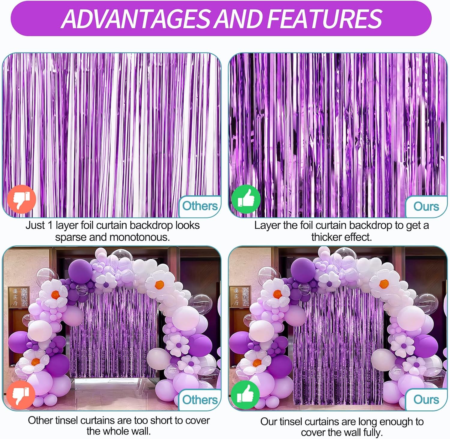 Crosize 3 Pack 3.3 x 9.9 ft Purple Foil Fringe Backdrop Curtain, Streamer Backdrop Curtains, Streamers Birthday Party Decorations, Tinsel Curtain for Parties, Galentines Decor