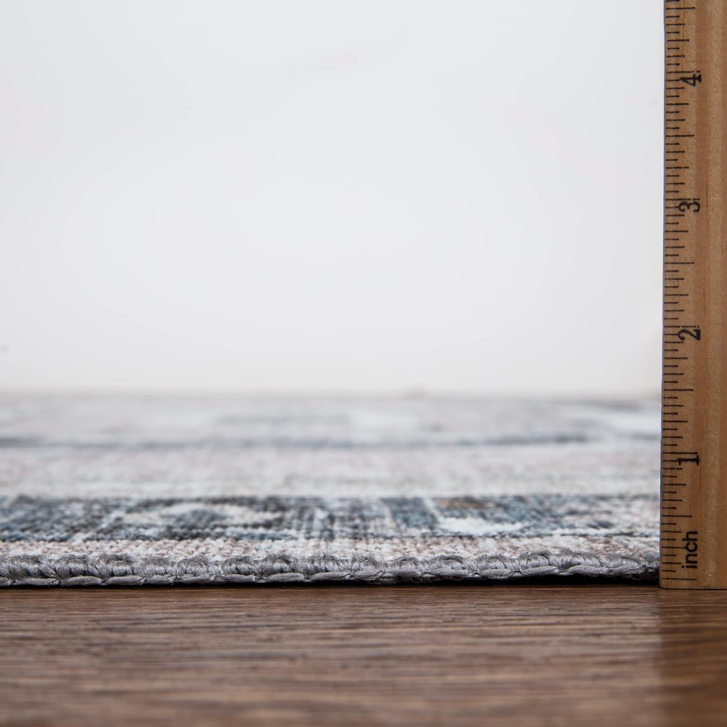 Bloom Rugs Washable Non-Slip 4' x 6' Rug - Pebble Gray/Blue Traditional Medallion Area Rug for Living Room, Bedroom, Dining Room, and Kitchen - Exact Size: 4' x 6'