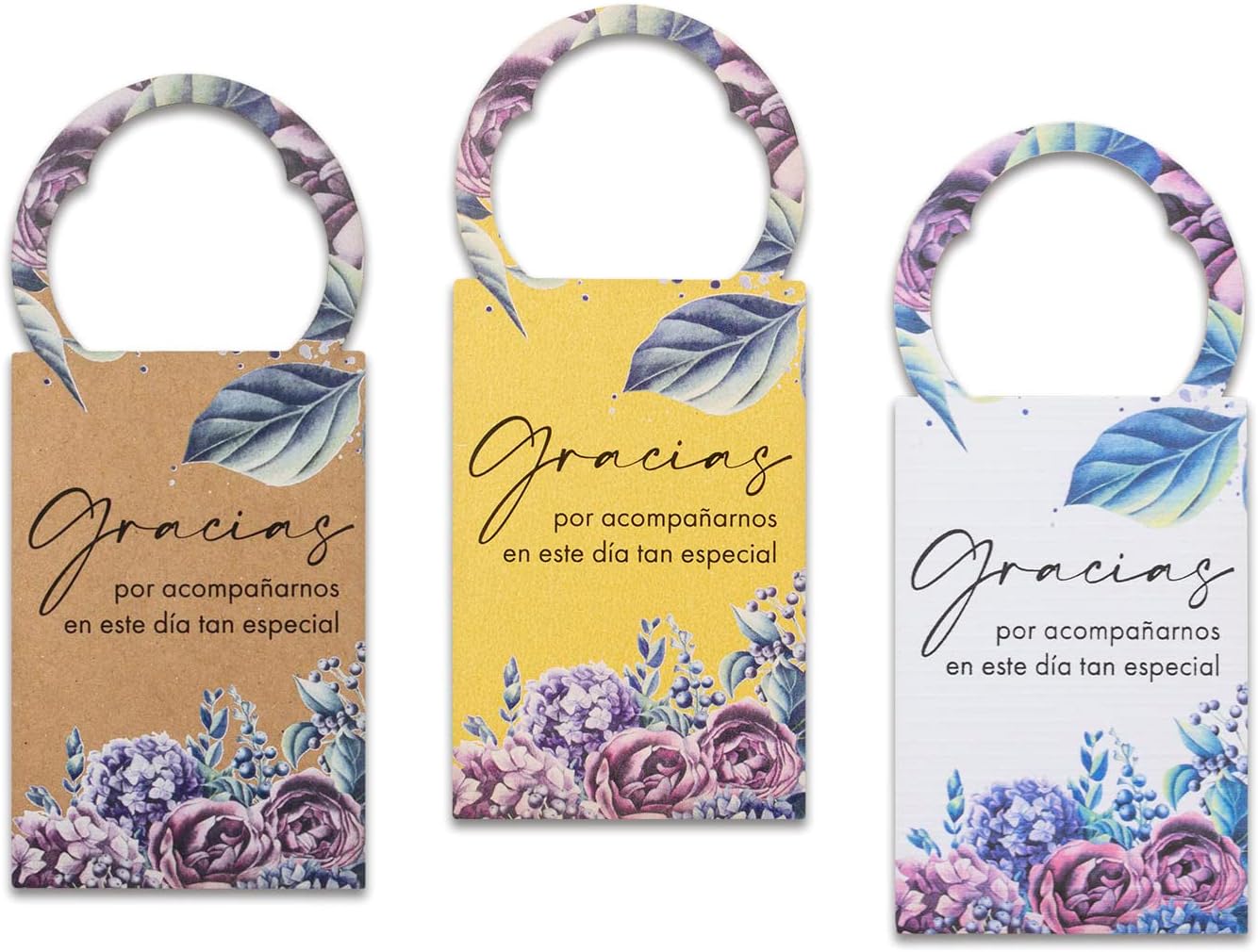 - The tags are made using 250GSM (170lbs) premium quality shimmering gold card stock. Each tag is printed with the wordings "Gracias por acompañarnos en este día tan especial".